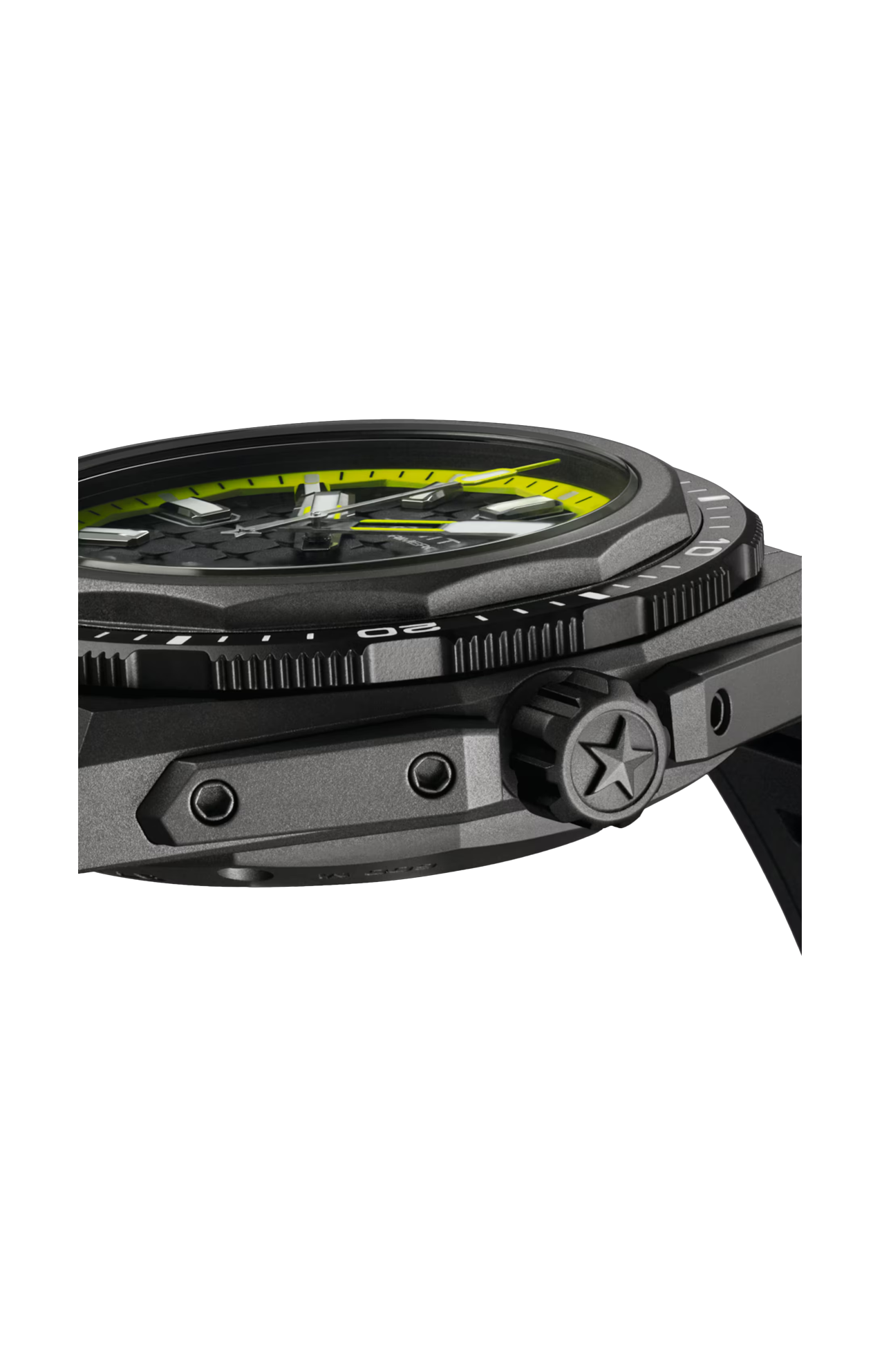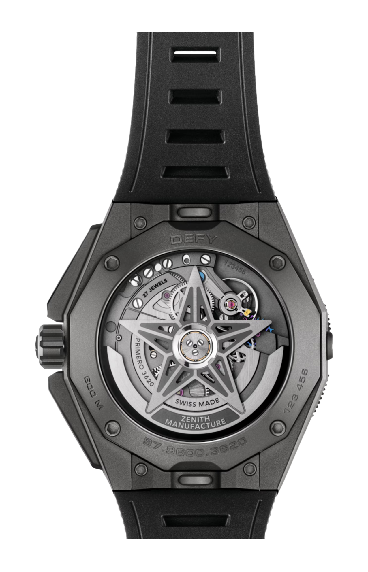 Il Defy Extreme Diver è disponibile con cassa angolare da 42,5 mm realizzata in titanio microsabbiato. È dotato di una lunetta girevole in ceramica nera e di una valvola per la fuoriuscita dell’elio con impermeabilità di 60 ATM (600 metri). Presenta un quadrante nero e giallo con motivo a stelle e indici e lancette luminose. È animato dal movimento automatico El Primero 3620 con riserva di carica di 60 ore. È fornito con un bracciale in titanio microsabbiato, un cinturino in caucciù nero con effetto “Cordura” e un cinturino in tessuto monopezzo giallo e nero, facilmente intercambiabili grazie all’ingegnoso sistema di sostituzione.