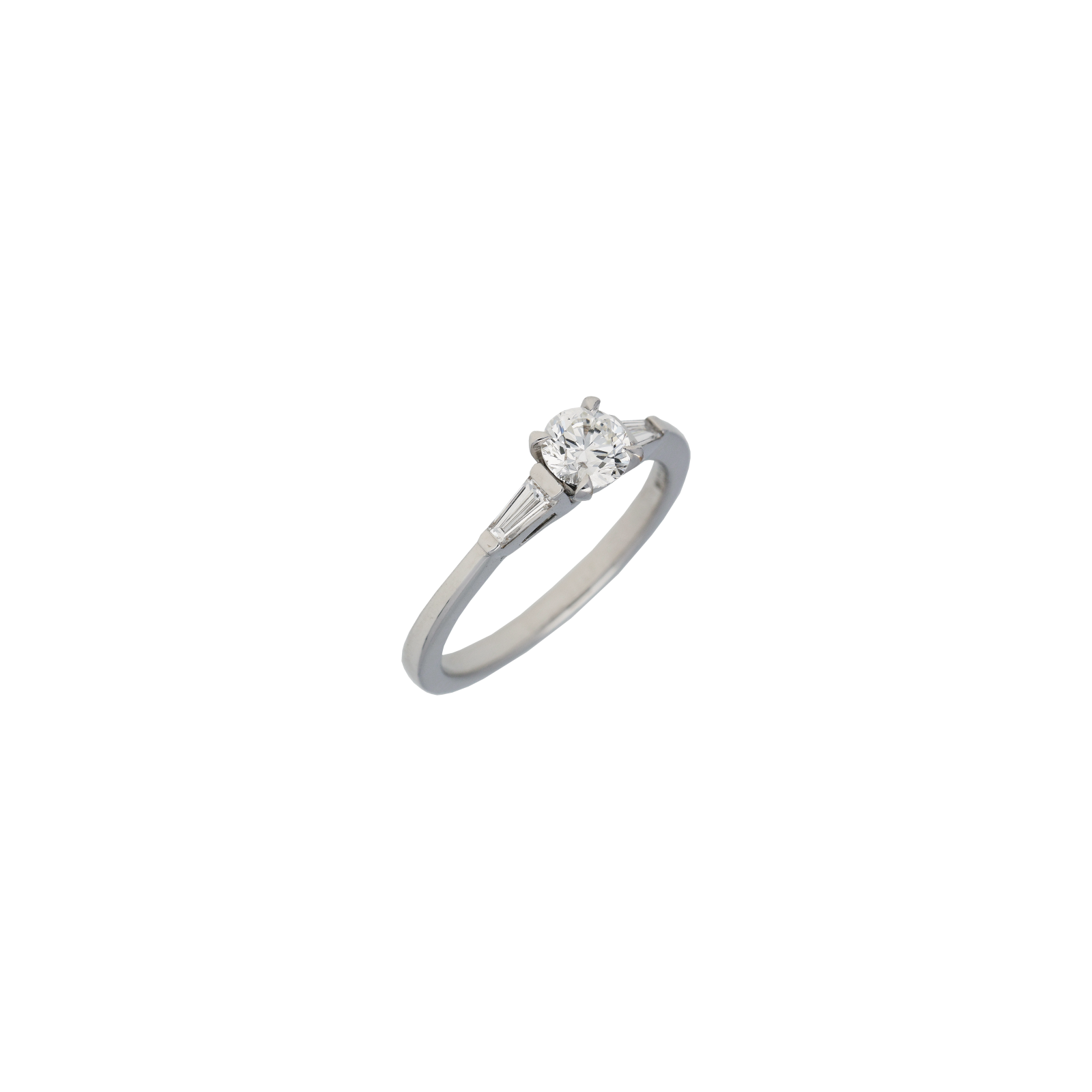 Anello in oro bianco 18 carati con diamanti bianchi taglio brillante e taglio trapezio