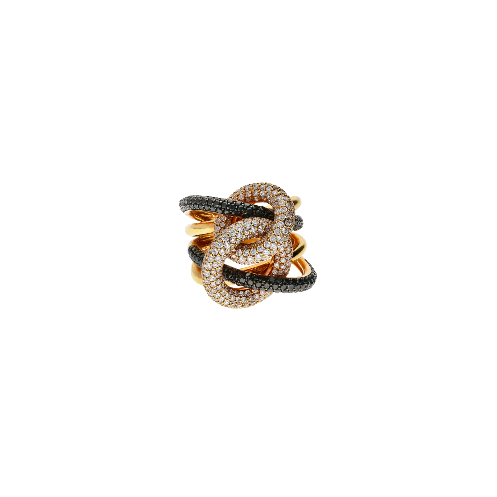 Anello in oro rosa 18 carati con diamanti bianchi taglio brillante e diamanti neri taglio brillante
