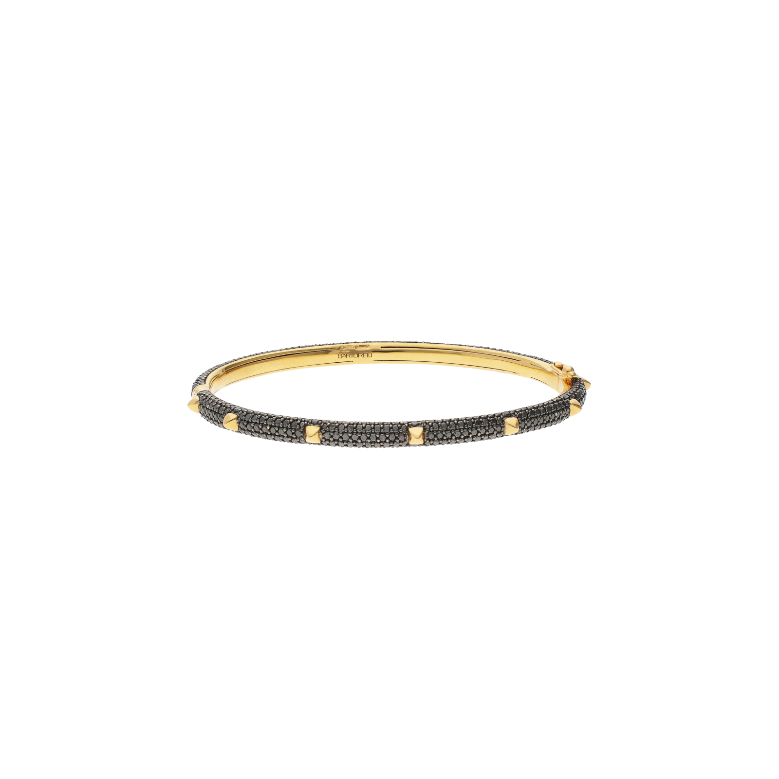 Bracciale rigido collezione piramidi modello sottile in oro rosa full pavè di diamanti neri taglio brillante