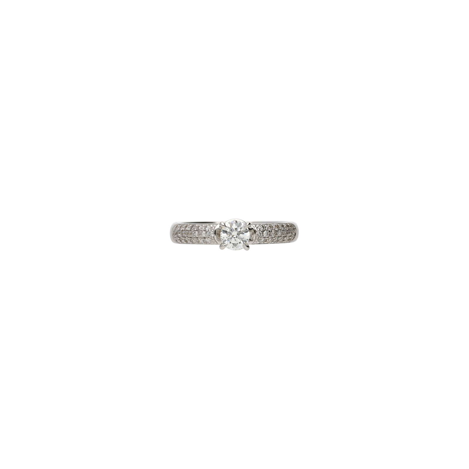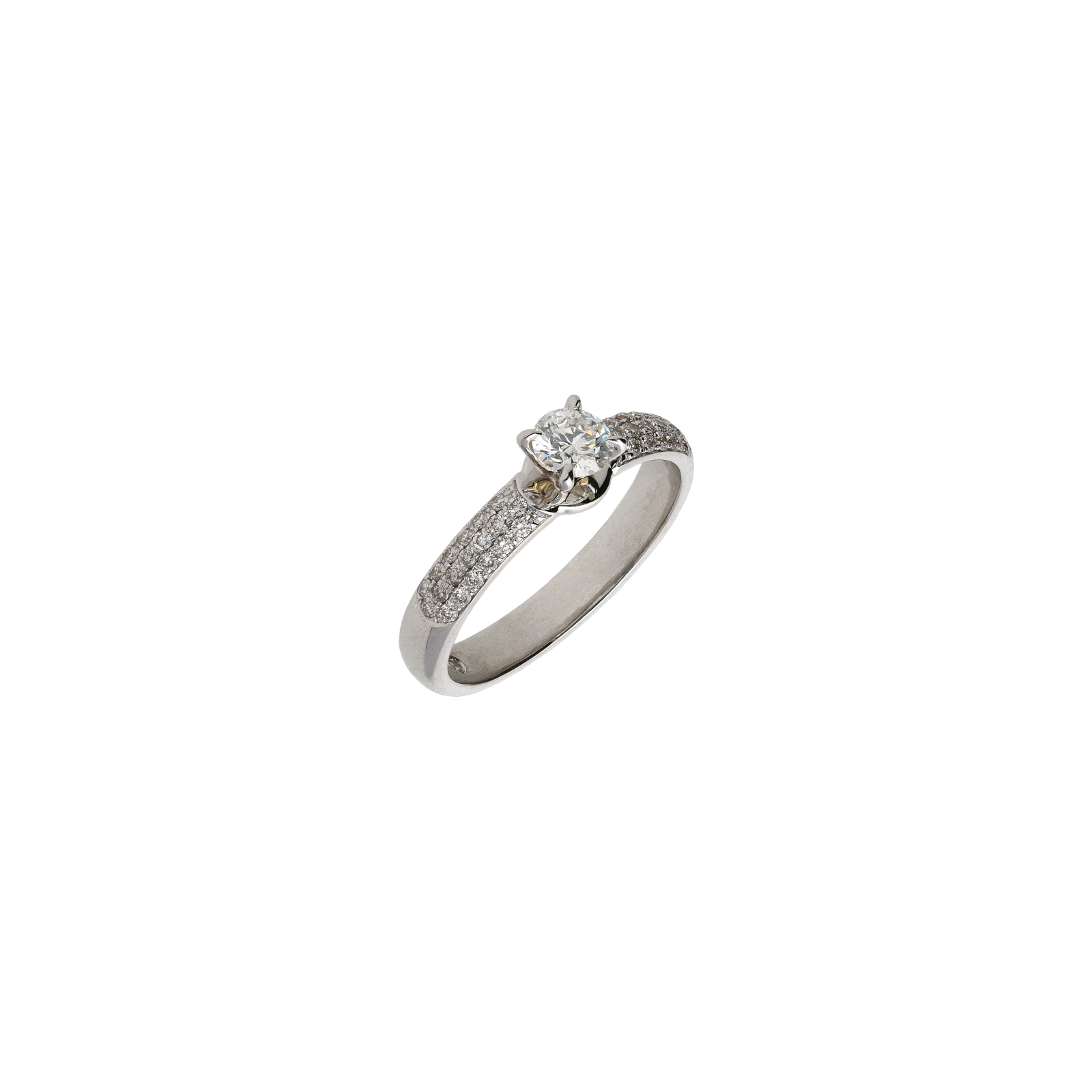 Anello solitario in oro bianco con diamante certificato, pavé di diamanti e diamante segreto - BAAN245