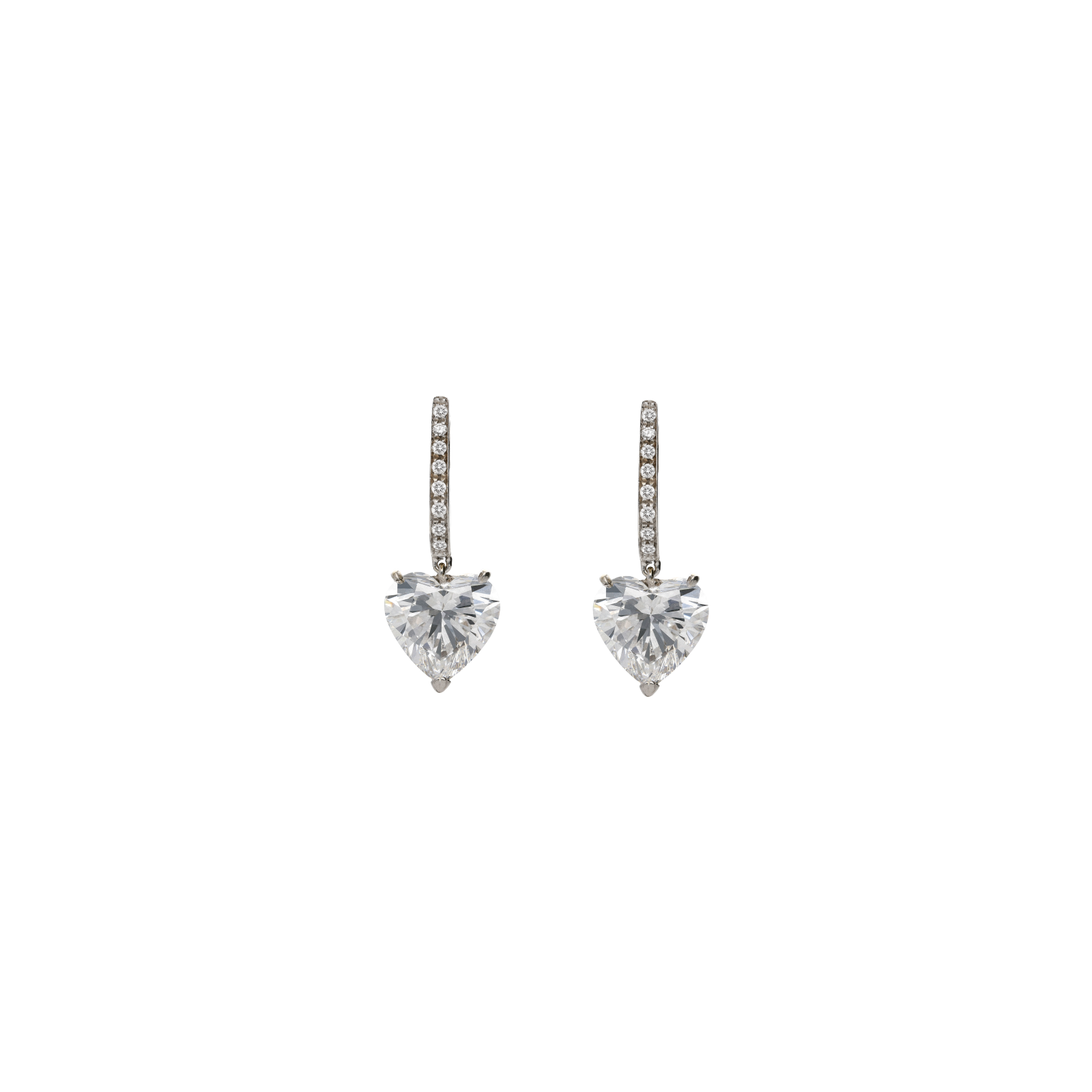 Orecchini cuore pendente in oro bianco e diamanti - F.199