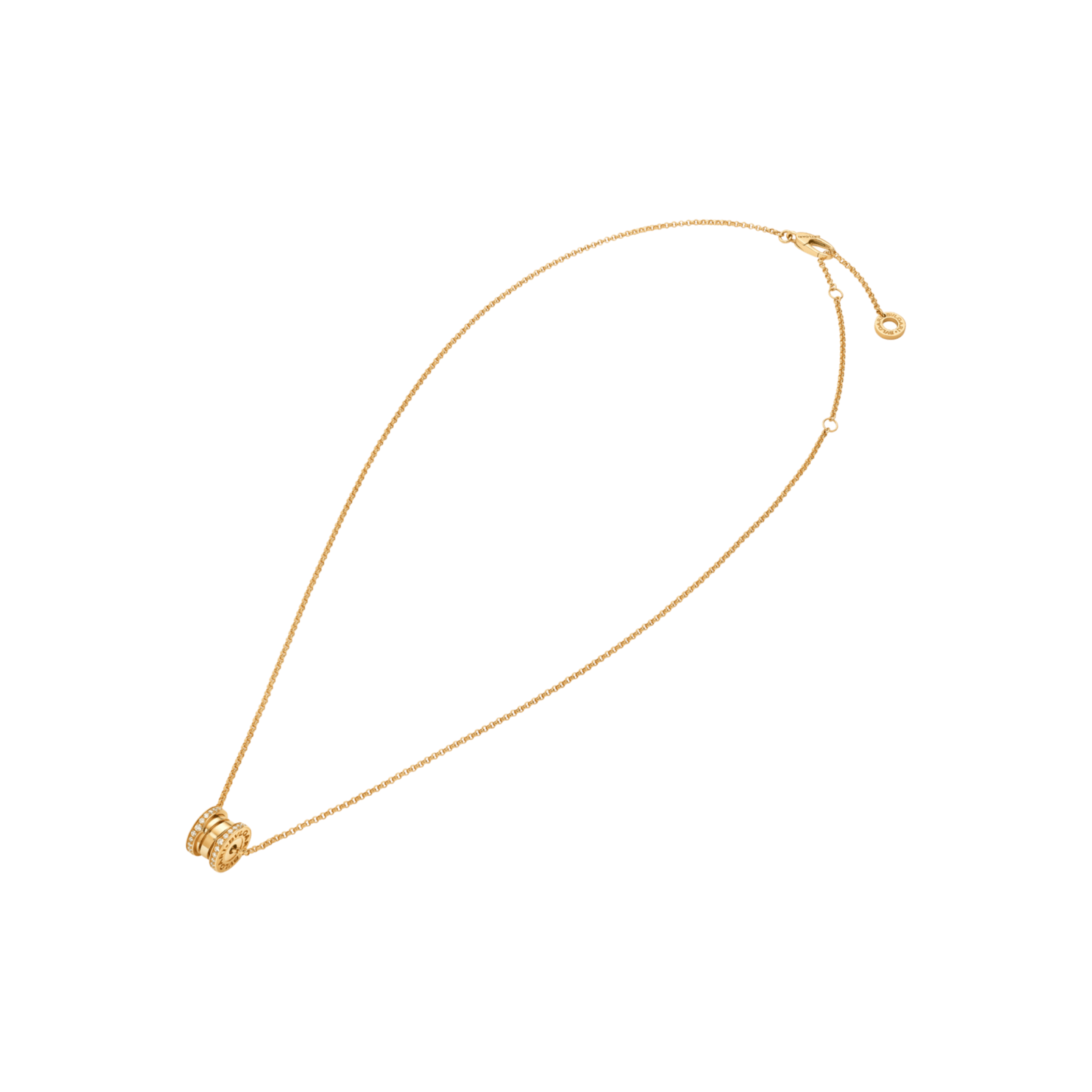 Vera icona del design contemporaneo sin dal 1999, B.zero1 sfida ogni tendenza e convenzione con il suo perfetto connubio tra ispirazione romana, design industriale e maestria all’avanguardia. Realizzata in oro giallo 18 kt, la collana con catena e pendente con diamanti unisce alle perfette geometrie dell’architettura romana uno stile dalla moderna e inconfondibile eleganza. Un emblema del talento creativo di Bvlgari e della sua incessante ricerca dell’innovazione. Collana B.zero1 in oro giallo 18 kt con pavé di diamanti.