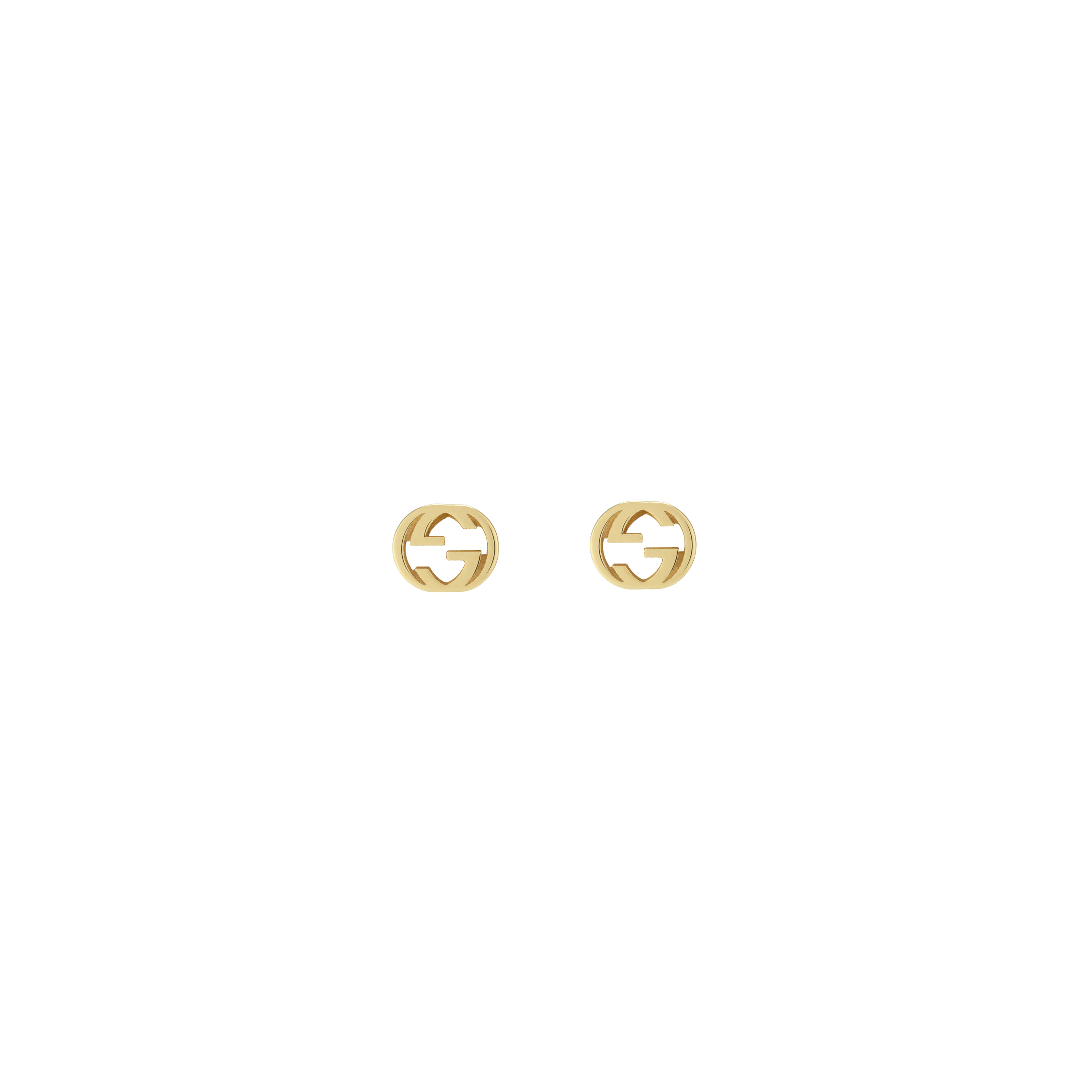 La collezione di gioielli Interlocking G prende spunto dal logo geometrico, dando vita a questo design. Questi orecchini in oro rosa 18 carati a forma di G intrecciata innovano il popolare stile a bottone.