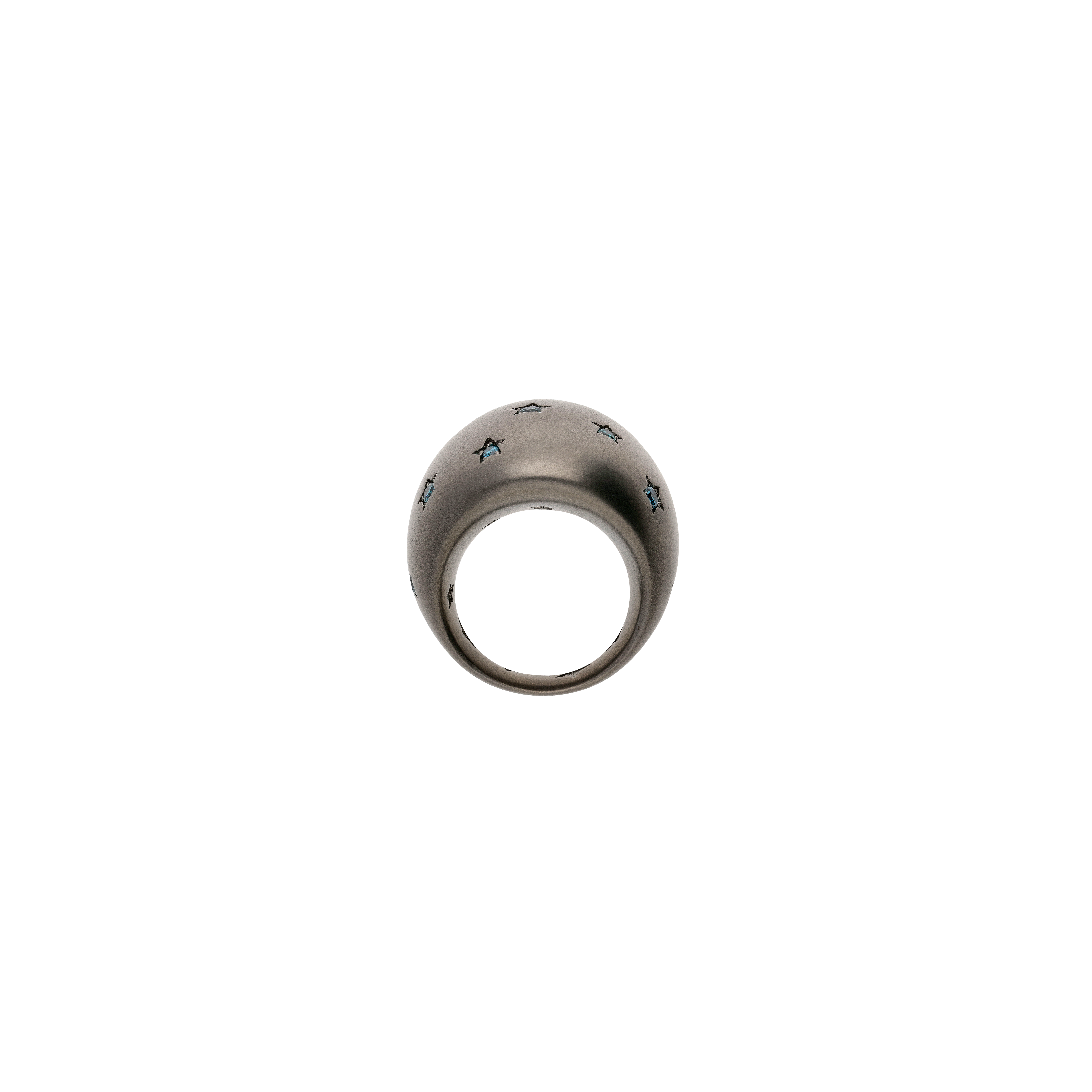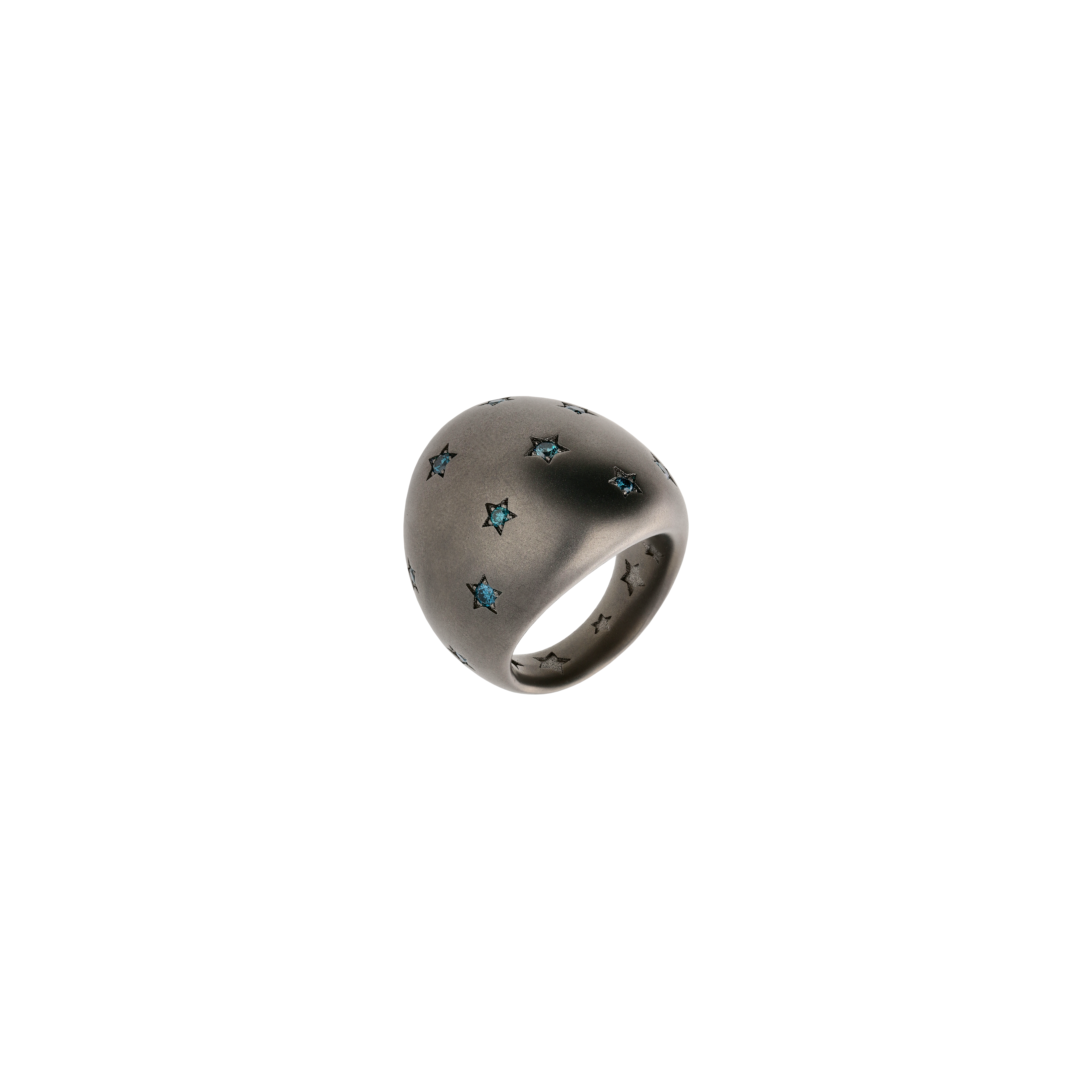 Anello a fascia bombata in titanio sabbiato e diamanti blu - SAN6DBL12