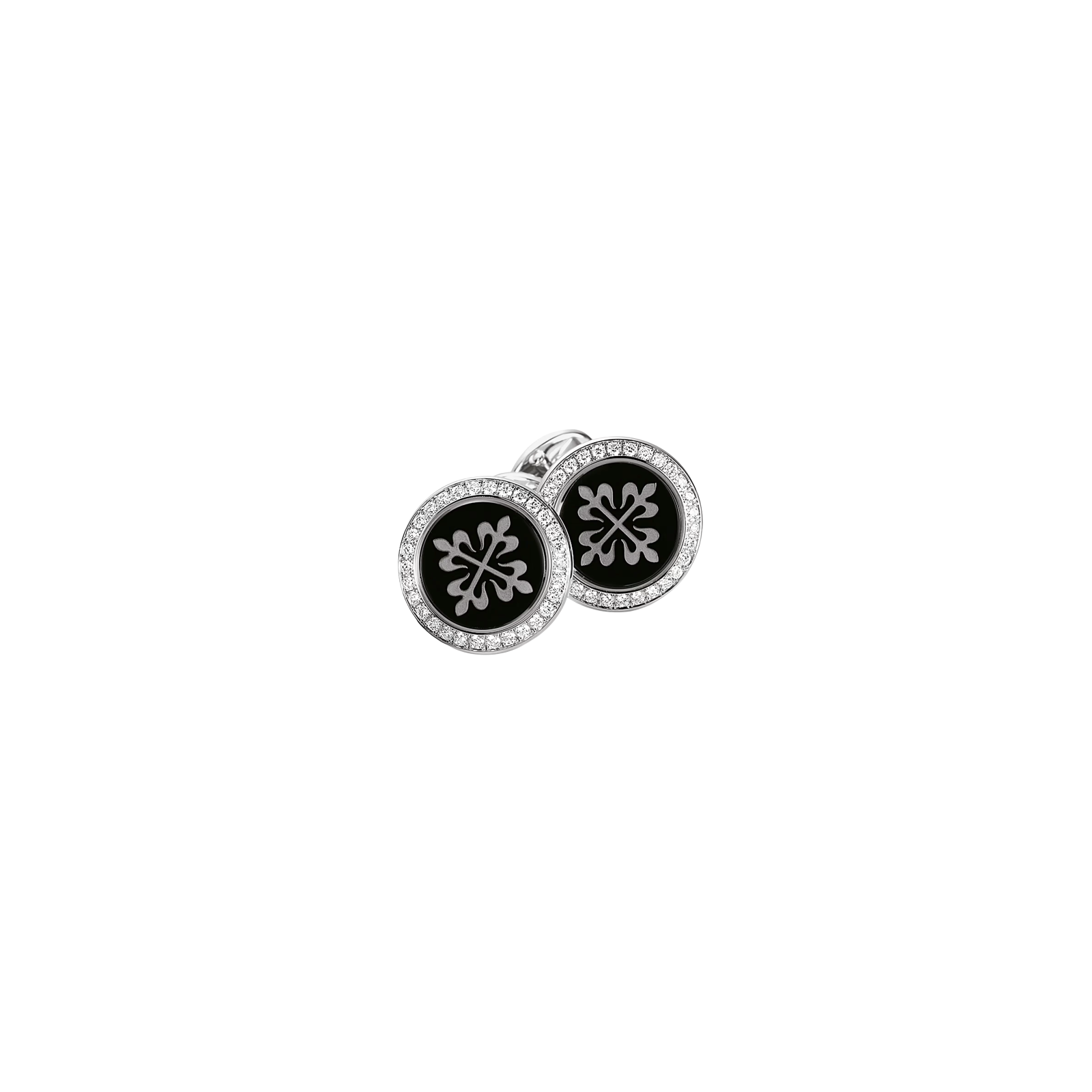 Gemelli da polso calatrava in oro bianco con diamanti e onice centrale inciso - 205.9108G-001