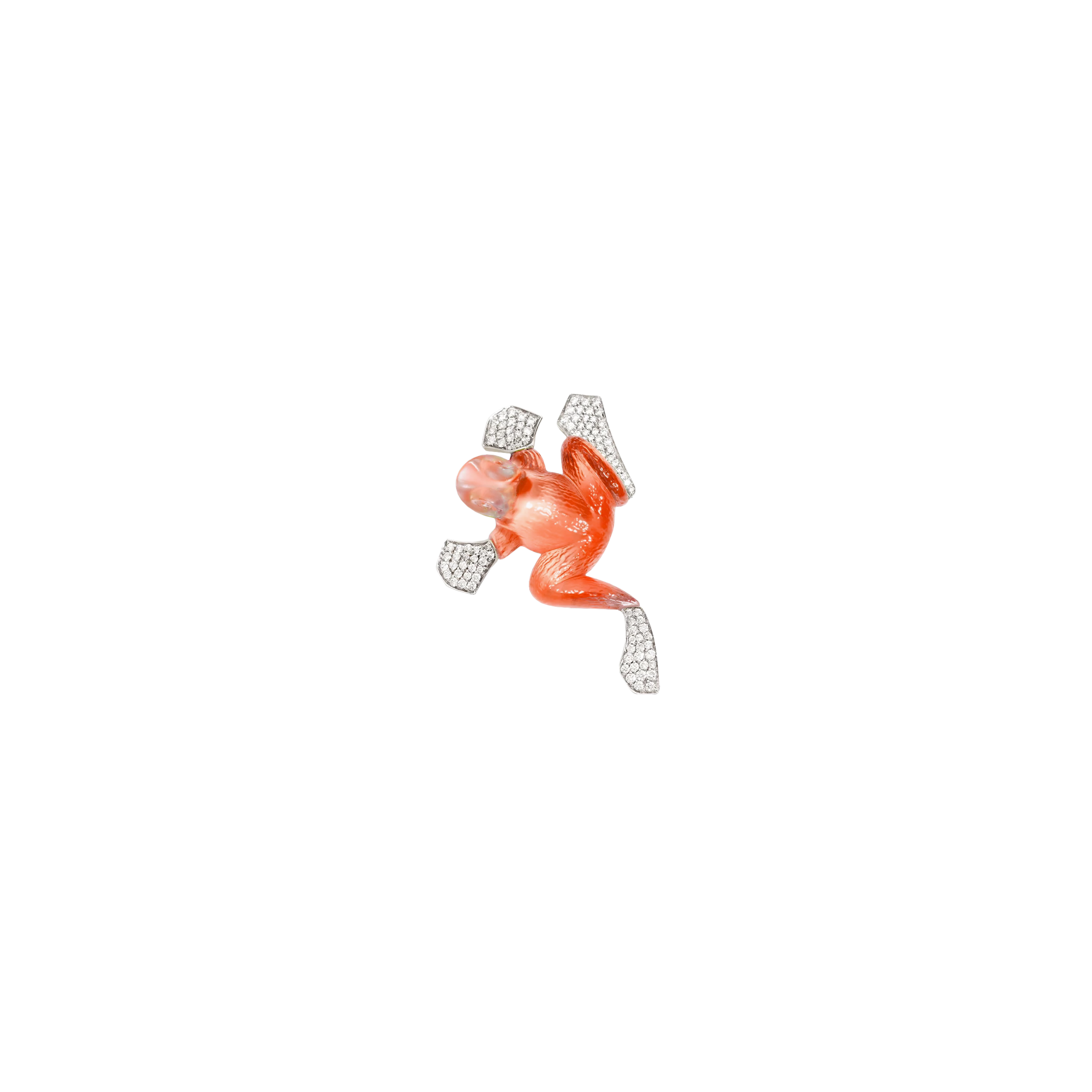 Spilla rana in oro bianco 18k, diamanti, corniola, giada e cristallo di rocca - P00428S0431