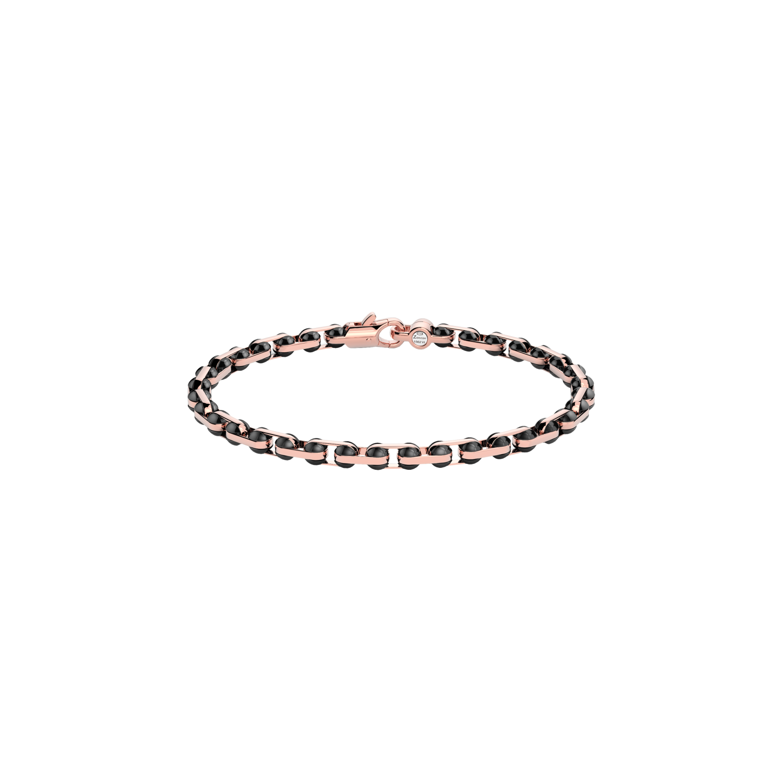 Bracciale Zancan in oro 18kt e ceramica nera. Il bracciale è composto da link geometrici uniti da perni che donano un design sinuoso e morbido al gioiello. Il contrasto tra oro rosa e lucente ceramica nera dona a questo bracciale un forte impatto visivo. Un gioiello della grande complessità meccanica, ed estrema eleganza che esalta al massimo questo gioiello di altissima gioielleria. Il bracciale fa parte della collezione Ceramikgold, la collezione che unisce oro 18k e ceramica tramite complesse tecniche di lavorazione.
