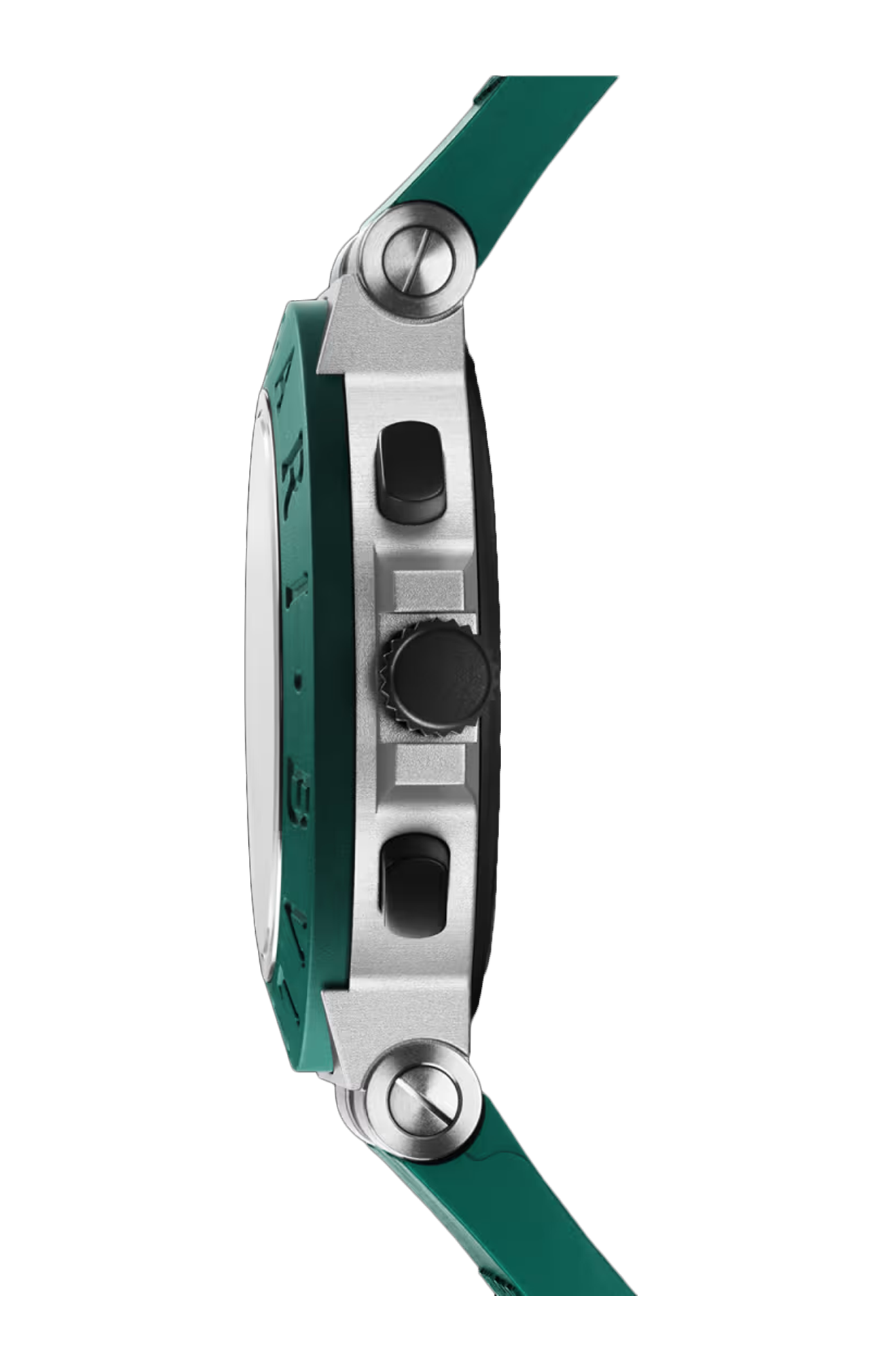 Incarnando un ideale di eleganza che va oltre ogni epoca e tendenza, BVLGARI Aluminium ridefinisce i canoni dell’orologeria sportiva di lusso. Evocando le radici mediterranee di BVLGARI, questa speciale edizione dell’orologio con cronografo presenta un quadrante dégradé verde ispirato alle ricche nuance del mare e un'incisione della rosa dei venti sul fondello. Con la sua inconfondibile combinazione tra cassa in alluminio e lunetta e bracciale in caucciù verde scuro, l’orologio unisce materiali audaci e non convenzionali, affermandosi nel panorama dell’orologeria contemporanea con uno stile decisamente innovativo e moderno.