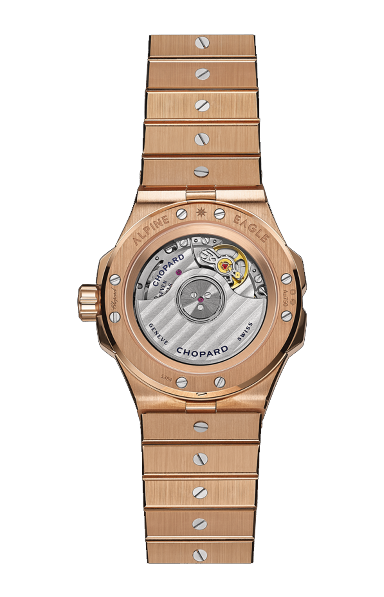 La nuova collezione di orologi Sporty-Chic Alpine Eagle, contemporanea, raffinata e dal look deciso, è l’odierna reinterpretazione del St Moritz, la prima creazione elaborata nel 1980 da Karl-Friedrich Scheufele, oggi co-presidente della Maison Chopard. Alpine Eagle, progettato e disegnato da quest’ultimo, concentra tutta la passione per le Alpi e per l’aquila che, con la sua forza altera, regna suprema su queste vette. L’orologio realizzato in oro etico rosa 18 carati batte al ritmo di un movimento con certificato di cronometria. Alpine Eagle è destinato alle “aquile contemporanee”, quegli uomini ispiratori che seguono una visione e raggiungono qualunque obiettivo nella vita quotidiana. Con lungimiranza e determinazione, raccolgono le sfide di domani, mossi dalle stringenti problematiche ambientali.