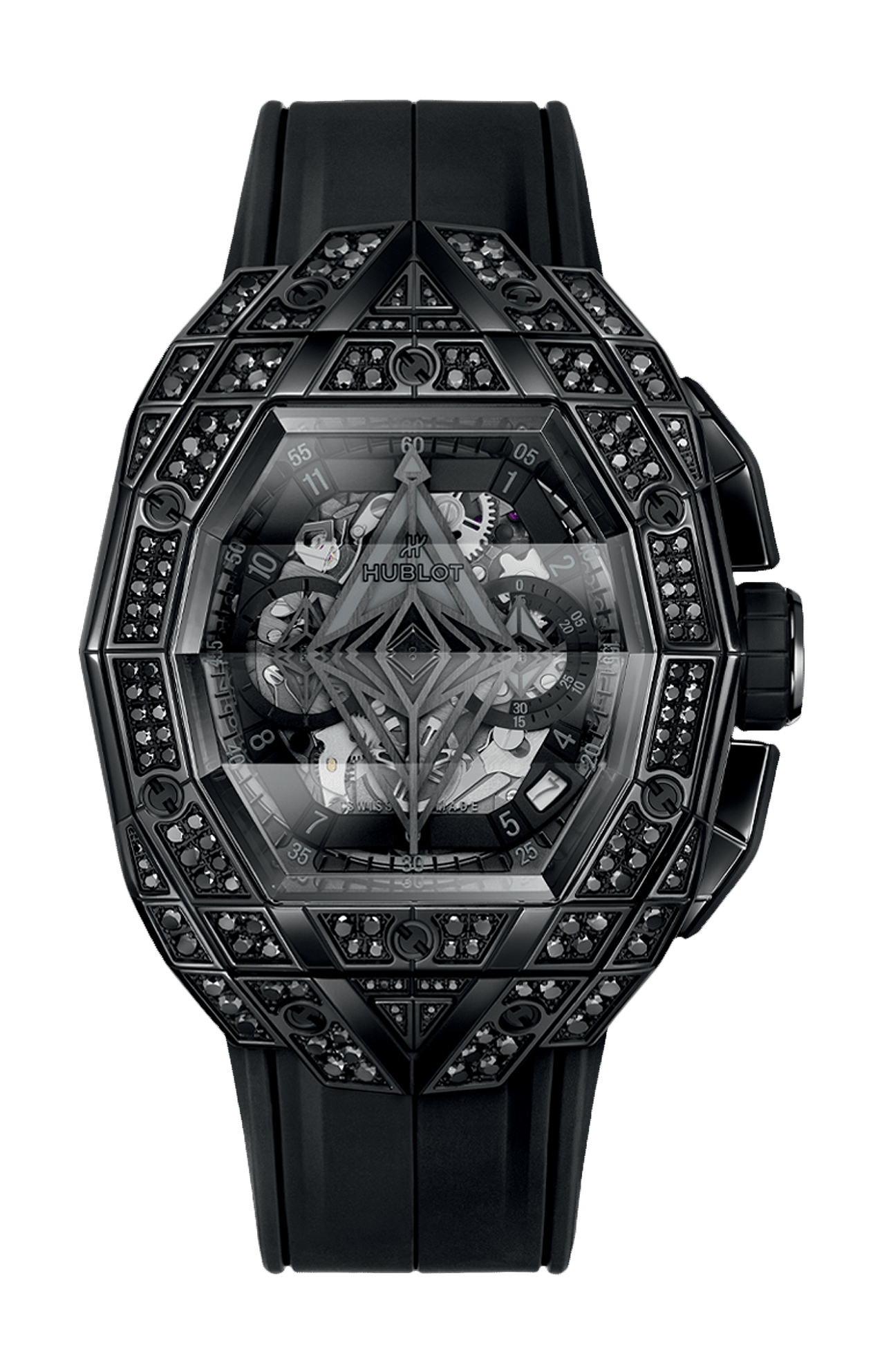 Per Hublot, i materiali sono parte integrante del design dei suoi orologi. Devono completarli il design, proteggendone al contempo il meccanismo e resistendo alla prova del tempo. Per questo motivo, la manifattura ha scelto di utilizzare la ceramica high-tech per alcune lunette e casse; si tratta di un materiale ultraresistente e quasi completamente antigraffio (a parte il diamante) con una base di zirconio sinterizzato ad altissime temperature.