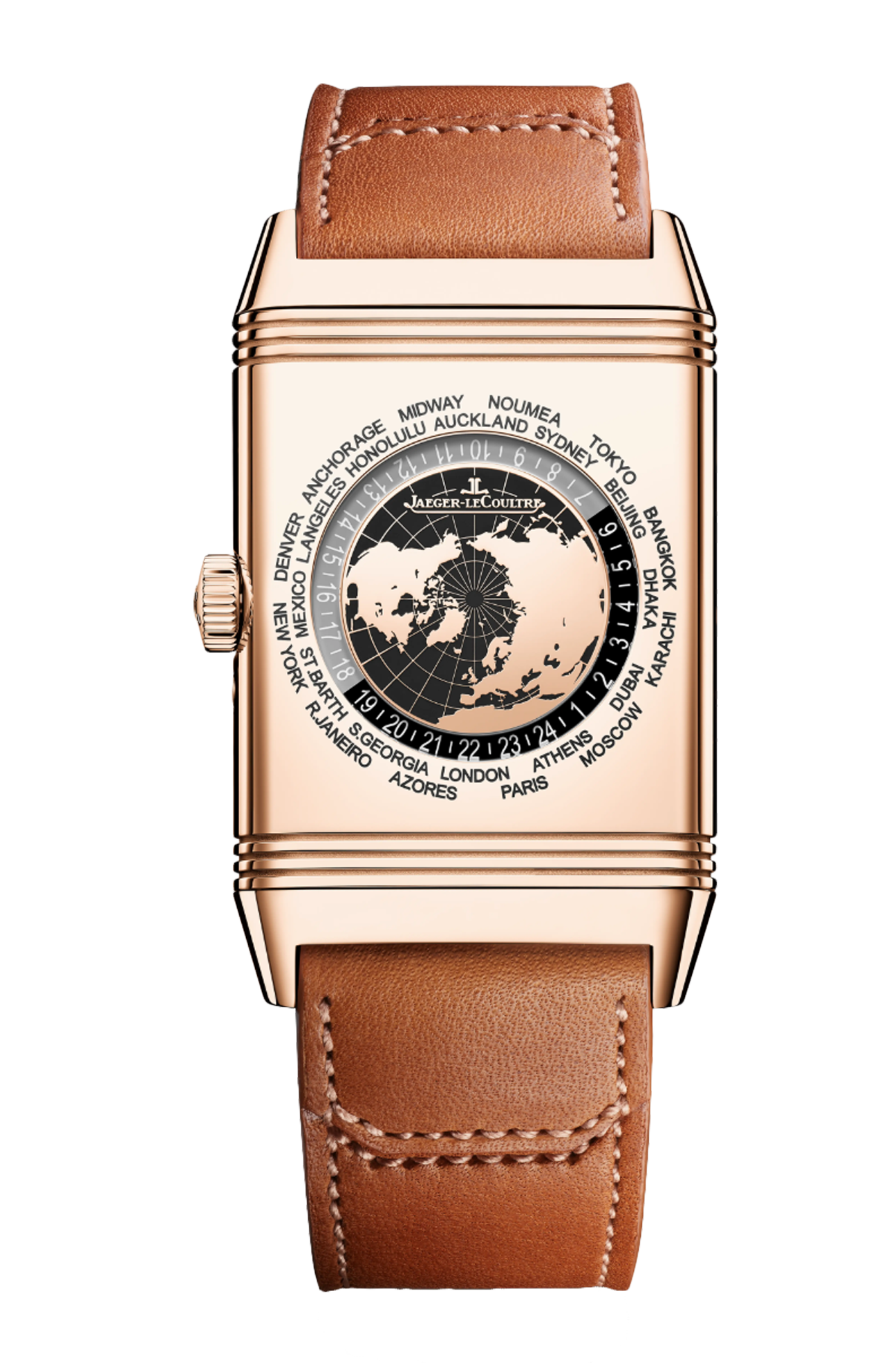 Caratterizzato da una cassa ben bilanciata in oro rosa 18 carati (750/1000), il retro Tribute Geographic ricorda i primi modelli del 1931. Sul fronte, il quadrante a raggi di sole è di un raffinato color cioccolato che mette in risalto la minuteria “Chemin de fer”, le lancette Dauphine e gli indici applicati dorati, oltre al grande datario a ore 12 e i piccoli secondi a ore 6. Sul retro, la complicazione dell’ora universale combina ergonomia e facilità d’uso con un unico pulsante di regolazione. Al centro, i continenti in oro lucido spiccano sugli oceani neri laccati a mano, con i nomi delle città incisi intorno al disco rotante dei 24 fusi orari. Il cinturino in pelle marrone si apre e si chiude con una fibbia ad ardiglione in oro rosa. Dotata del calibro di manifattura 834, questa edizione limitata di 150 esemplari offre 42 ore di riserva di carica. Secondo cinturino incluso in pelle di alligatore nero.