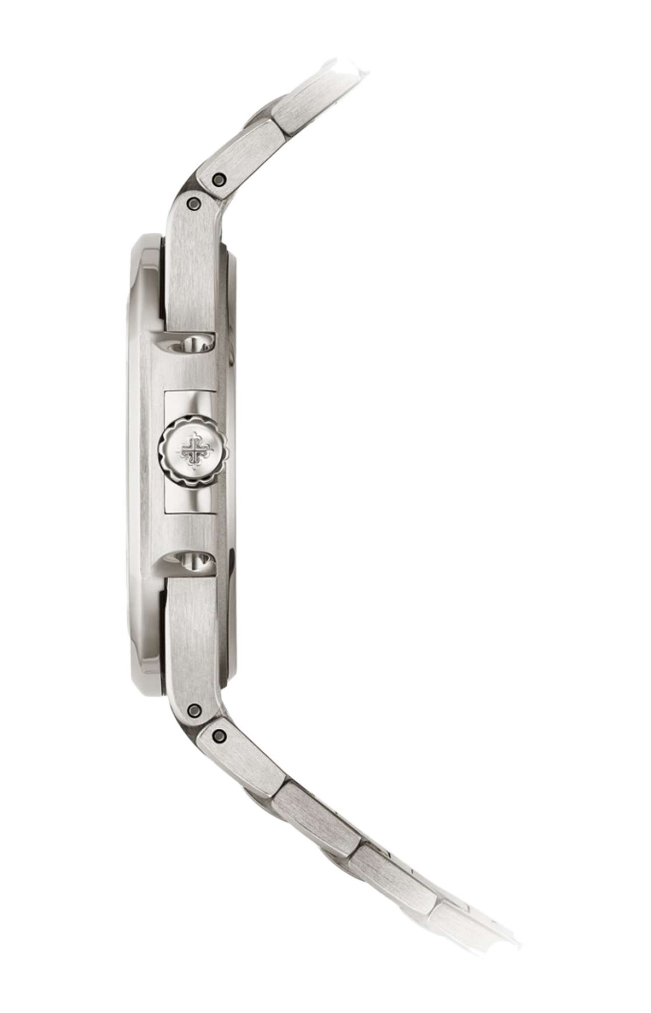 Nuova versione del Nautilus per signora con movimento al quarzo, cassa di 32 mm di diametro e bracciale in oro, questo orologio è sinonimo di innovazione con il colore azzurro del suo quadrante laccato con motivo a onde, tipico di questa collezione. La cassa ispirata alla sagoma di un oblò sa catturare l’attenzione grazie alla sua alternanza di finiture satinate e lucide. La lunetta è illuminata da una fila di 46 diamanti taglio brillante (0,8 ct). Il bracciale in oro bianco, anch’esso impreziosito dalle finiture a contrasto, è dotato di un sistema di regolazione bloccabile e di una fibbia déployante brevettata Patek Philippe con quattro punti di attacco indipendenti.