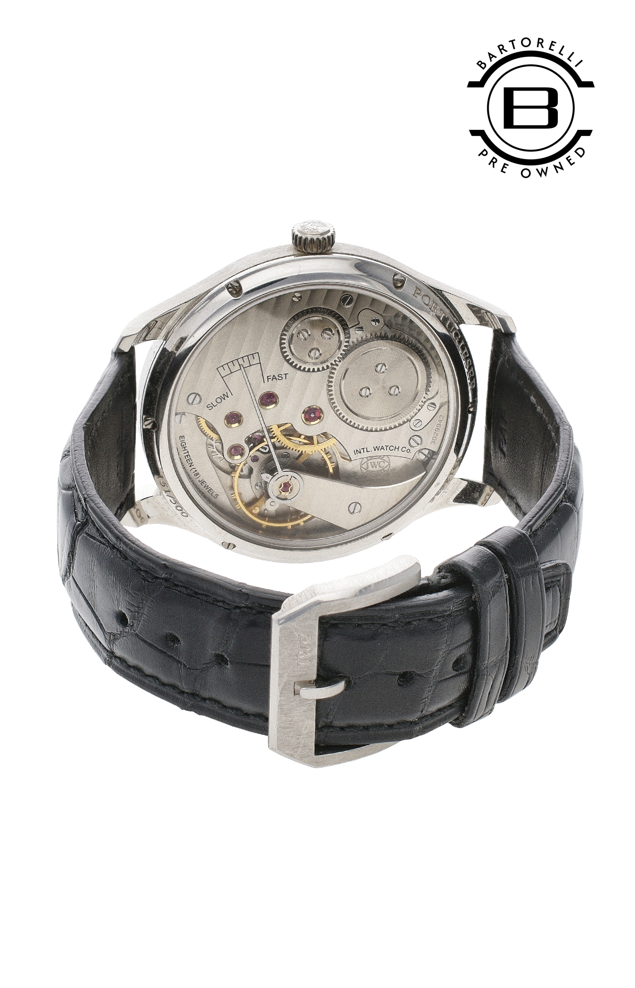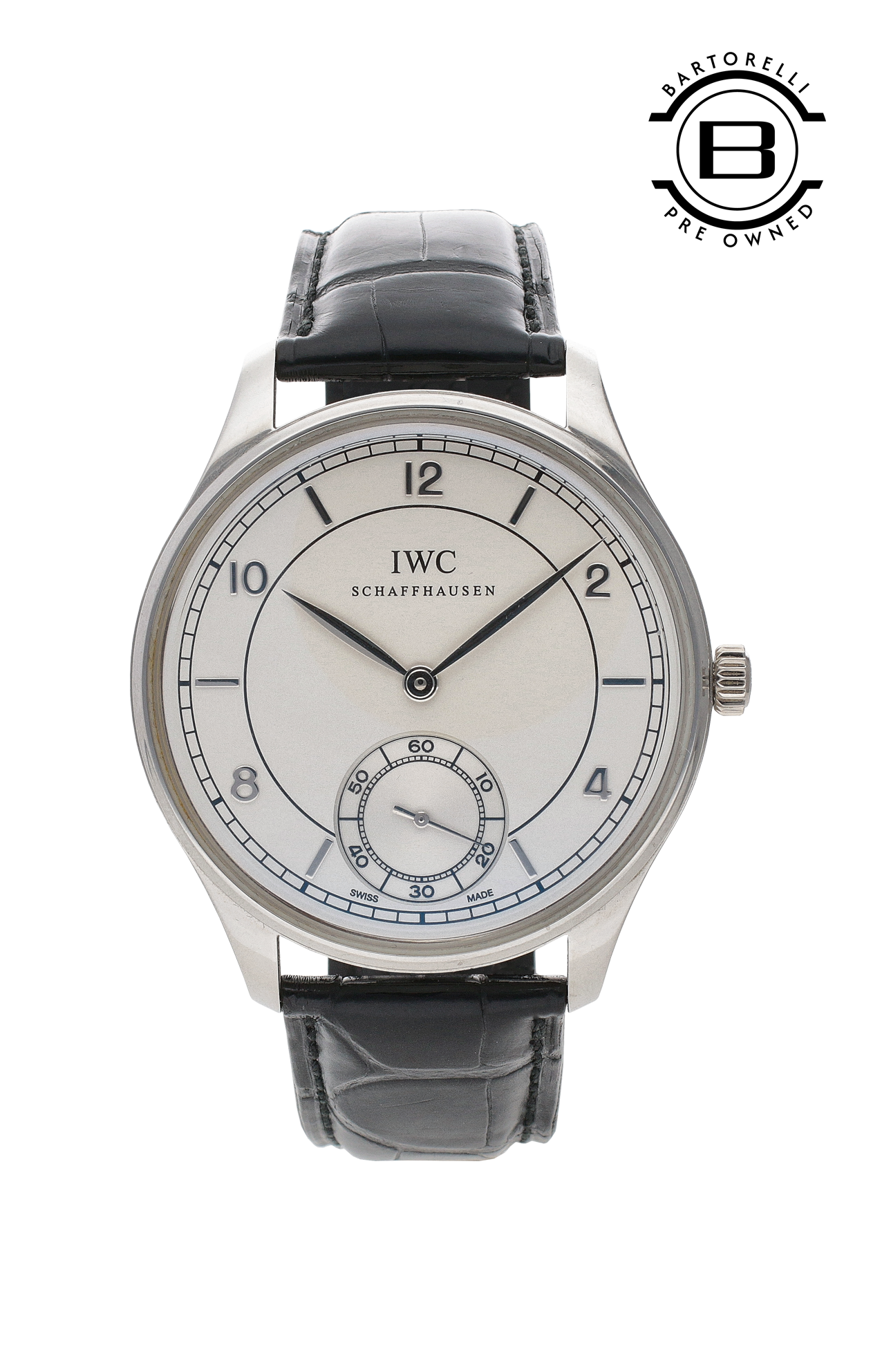 Alla fine degli anni 1930, due commercianti portoghesi commissionano a IWC degli orologi da polso con la precisione di marcia dei cronometri da marina. Nasce così il primo «grande orologio da polso» con calibro da tasca, un segnatempo di assoluta avanguardia per quell’epoca. Nel 1993 il «Portuguese» celebra un grande ritorno, contribuendo all’attuale popolarità degli orologi da polso di grande formato e affermandosi come punto di riferimento dell’intero settore grazie alla sua complessa tecnica orologiera. Gli estimatori apprezzano tanto le dimensioni vistose di questi segnatempo quanto il loro quadrante discreto, con la caratteristica minuteria di tipo «chemin de fer» e i numeri arabi. I movimenti di manifattura IWC e le complicazioni di alto livello permeano il passato e il presente della famiglia Portuguese. La ripetizione minuti, la lancetta rattrapante e i movimenti di manifattura IWC con riserva di carica di 7 o 8 giorni hanno suscitato fin dal loro lancio l’entusiasmo degli intenditori. Al vertice di questa famiglia di orologi si colloca il Portuguese Sidérale Scafusia, a tutt’oggi l’orologio meccanico più esclusivo e complicato mai costruito da IWC.