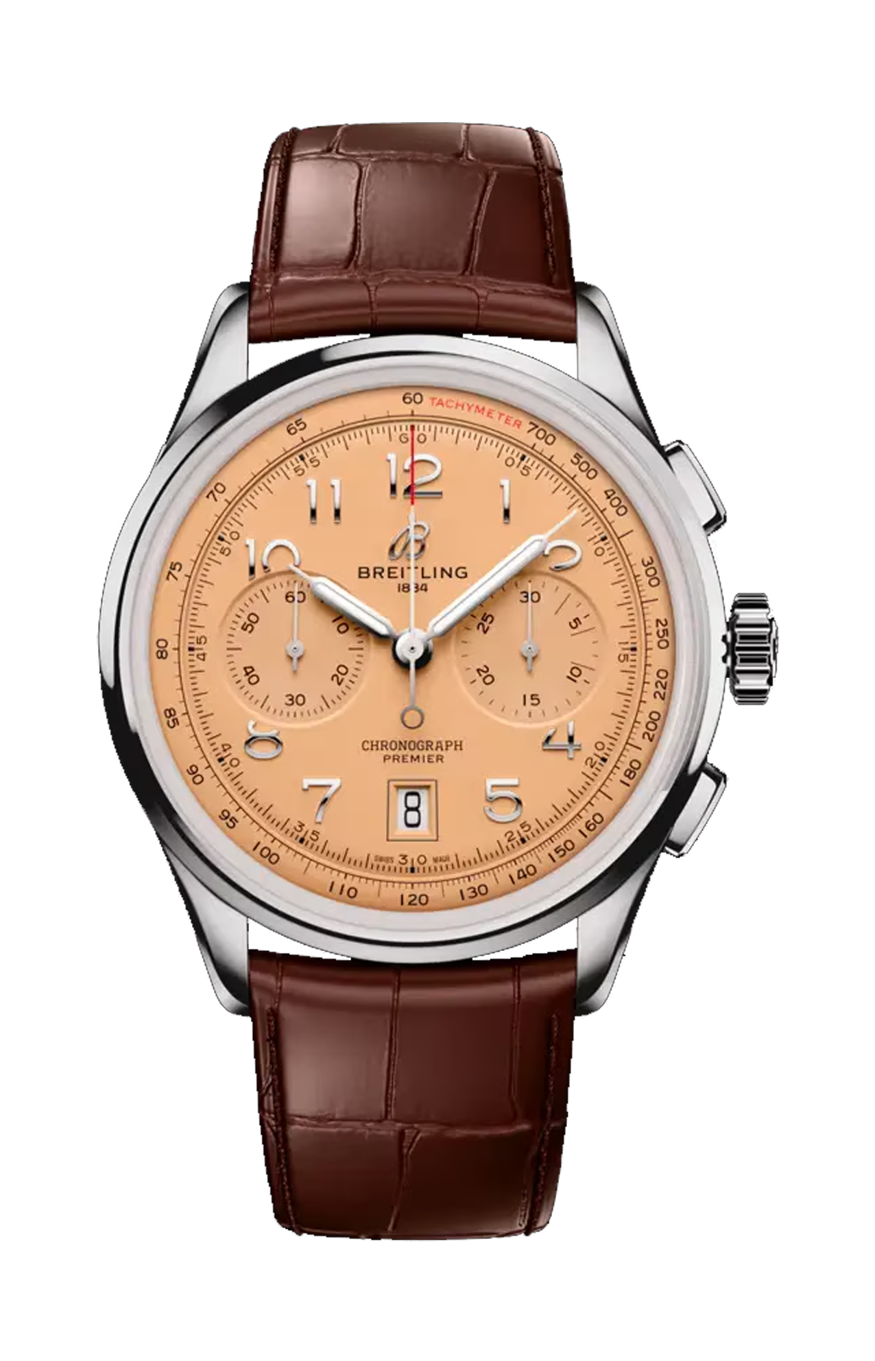 All’inizio degli anni ’40, Willy Breitling stava già sognando un periodo post-conflitto, dove l’utilità avrebbe lasciato spazio a un ottimismo senza freni. Iniziò a disegnare un cronografo funzionale, ma al contempo innegabilmente elegante, da poter indossare all’infinito e che fosse, per usare le sue stesse parole, «il segno inequivocabile di un gusto impeccabile». E chiamò questa nuova linea Premier. Per creare il Premier moderno, Breitling ha preservato i dettagli progettuali distintivi della versione vintage, compresa la lunetta liscia fissa, il quadrante con doppio registro, i pulsanti rettangolari affusolati e i numeri arabi applicati. Il Premier B01 Chronograph 42 si propone in una gamma di colori del quadrante e di materiali della cassa. È disponibile con una varietà di classici cinturini in pelle di coccodrillo o con un elegante bracciale in metallo a sette file. Il Premier moderno è anche all’altezza dei rigidi standard tecnici di Willy Breitling, con il suo eccezionale movimento a carica automatica – il calibro di manifattura Breitling 01 certificato COSC – progettato per la massima precisione, affidabilità e funzionalità.