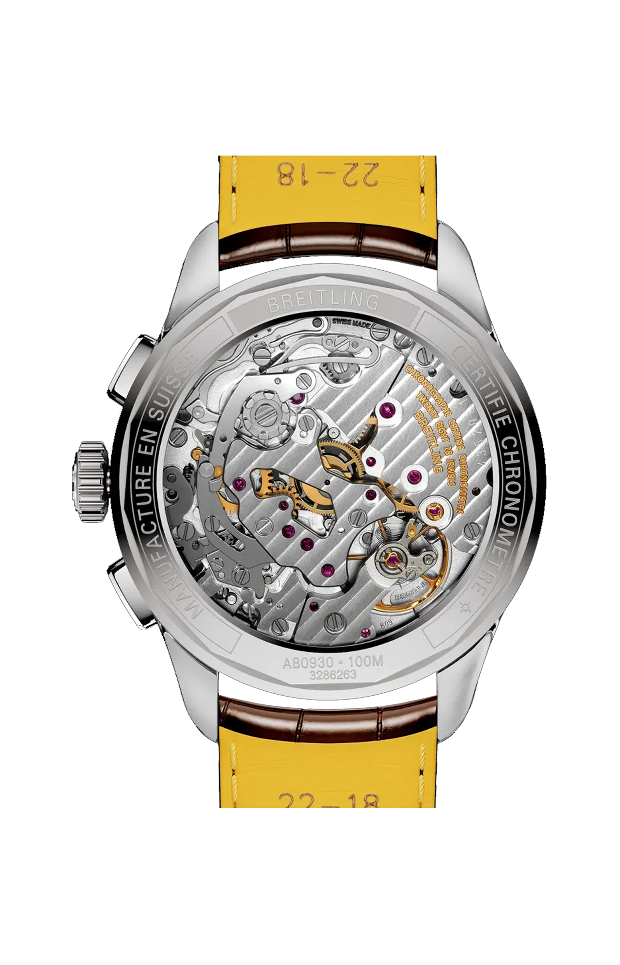 Rendendo omaggio a tre generazioni di inventori—Léon, Gaston e Willy Breitling—la collezione Premier incarna l’eredità di Breitling quale inventore del cronografo moderno. Per usare le parole di Willy Breitling, il Premier è un «segno inconfondibile di un gusto impeccabile». La moderna collezione Premier riporta in vita questa storia dando prova dell’elevato standard orologiero di Breitling. Presenta una gamma di complicazioni: il cronografo, la frazione di secondo Duograph, il calendario completo Datora e il tourbillon. Il design del cronografo Premier, rivisitato rendendo omaggio alla tradizione, mostra una varietà di dettagli di design eleganti come le scanalature sui lati della cassa, i pulsanti rettangolari, i numeri arabi applicati e le lancette di ispirazione vintage. È inoltre dotato di fondocassa aperto in vetro zaffiro che mette splendidamente in luce il calibro di manifattura Breitling B09 certificato COSC a carica manuale.