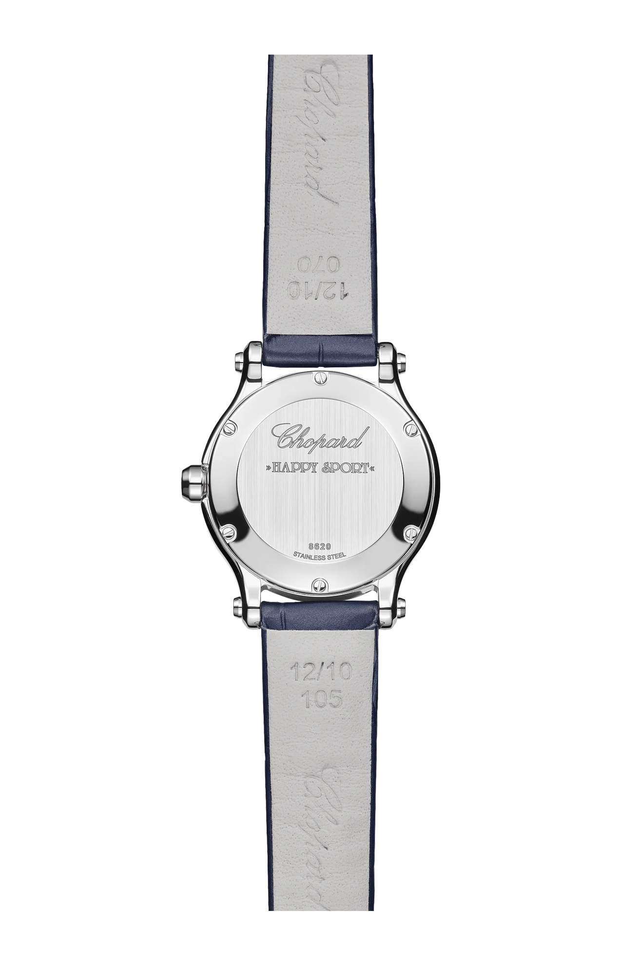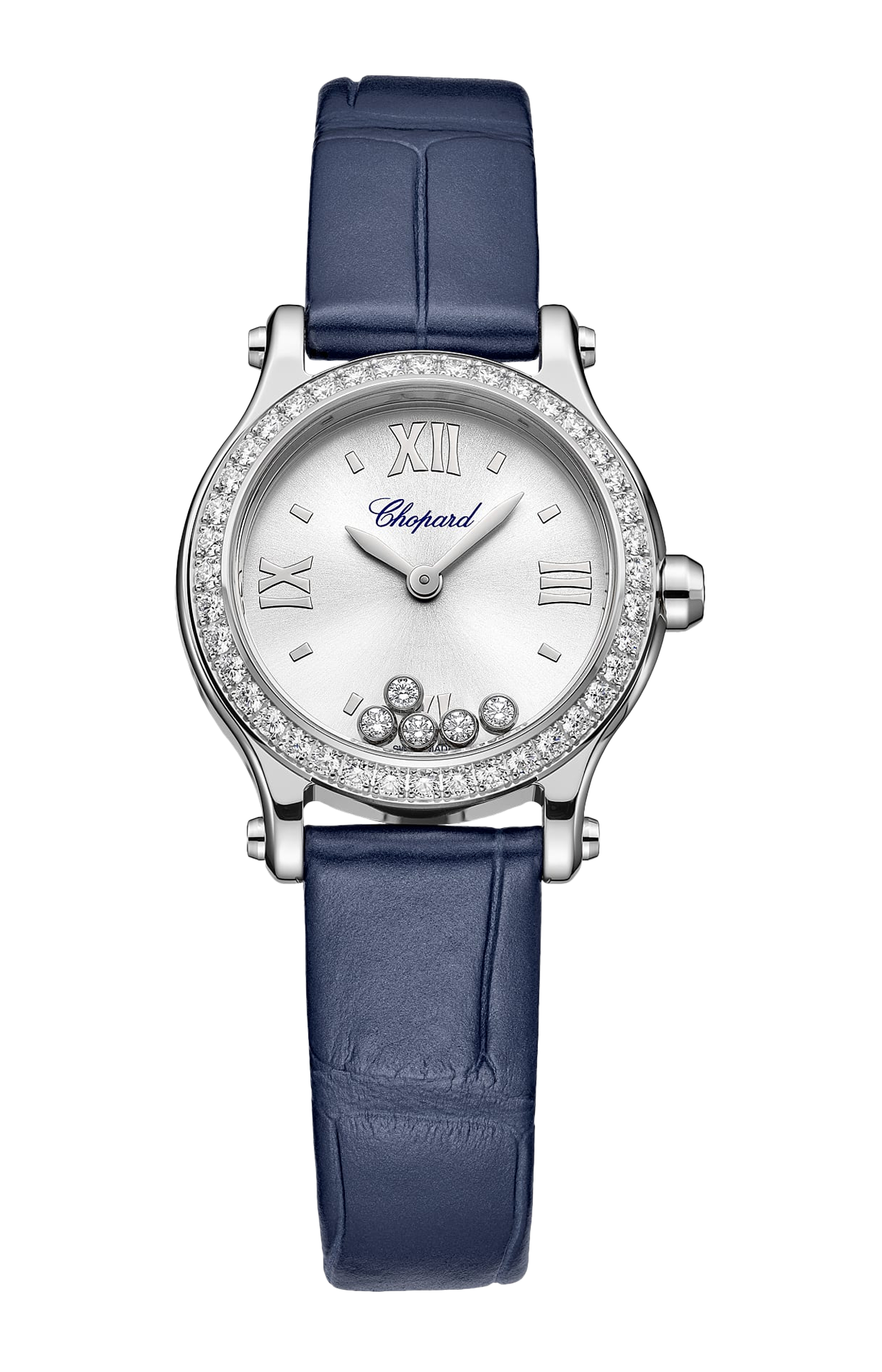 La collezione Happy Sport è l'emblema della creatività e dell'audacia di Chopard. Le sue gioiose pietre preziose, che danzano liberamente tra due vetri zaffiro, fanno sognare sin dal 1993, quando Chopard è diventata la prima maison a coniugare acciaio e diamanti. La grande competenza orologiera ha consentito a Chopard di dotare il modello Happy Sport da 33 mm di un movimento meccanico a carica automatica appositamente sviluppato per le casse dei modelli femminili. Little Diamonds Do Great Things.