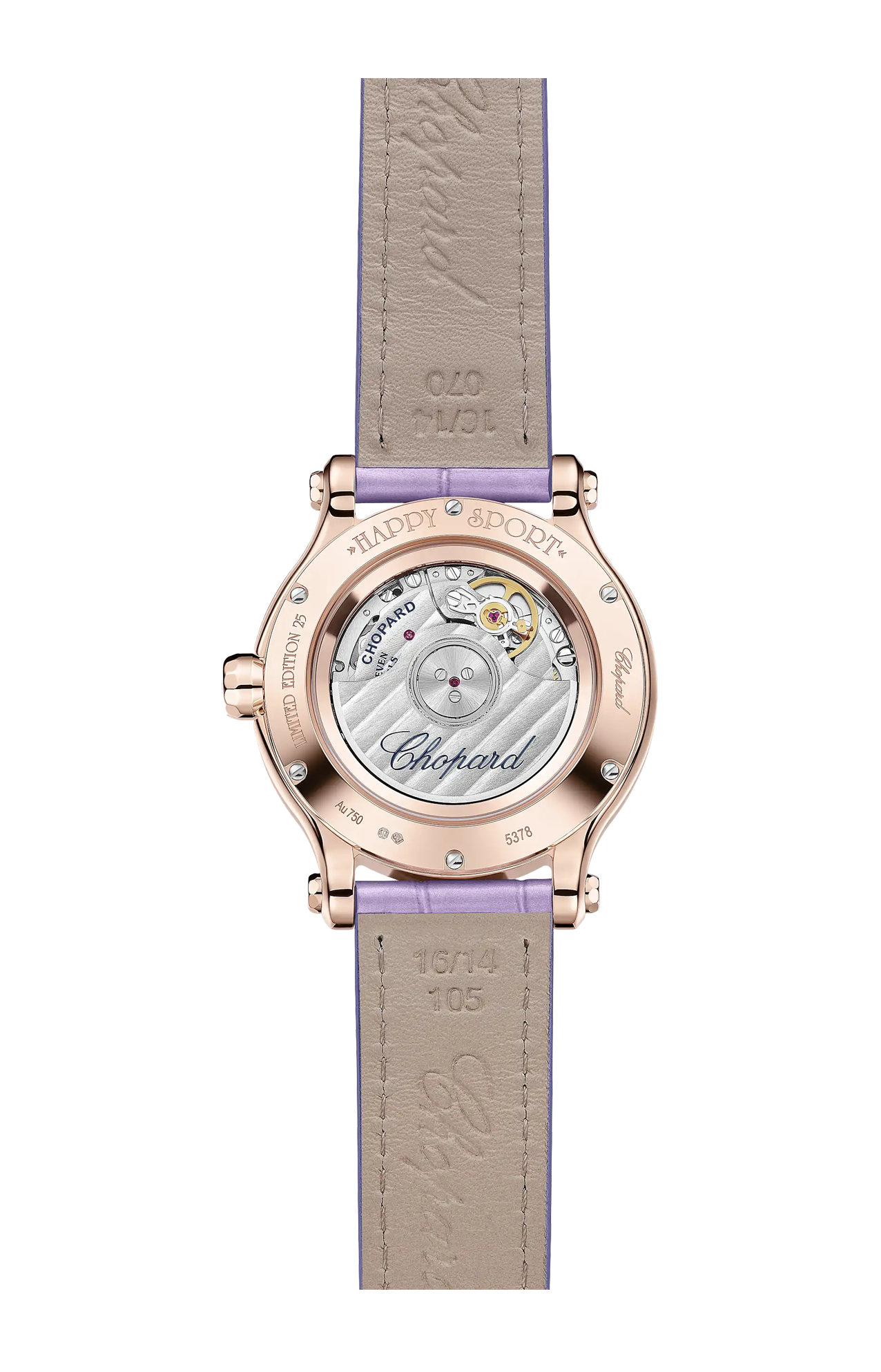 La collezione Happy Sport è l'emblema della creatività e dell'audacia di Chopard. Le sue vivaci pietre preziose, che danzano liberamente tra due vetri zaffiri, fanno sognare sin dal 1993, quando Chopard è diventata la prima maison ad abbinare acciaio e diamanti. Grazie al suo savoir-faire orologiero, Chopard ha dato vita a un Happy Sport da 33 mm con movimento meccanico a carica automatica appositamente sviluppato per le casse dei modelli femminili. Da piccoli diamanti nascono grandi cose.