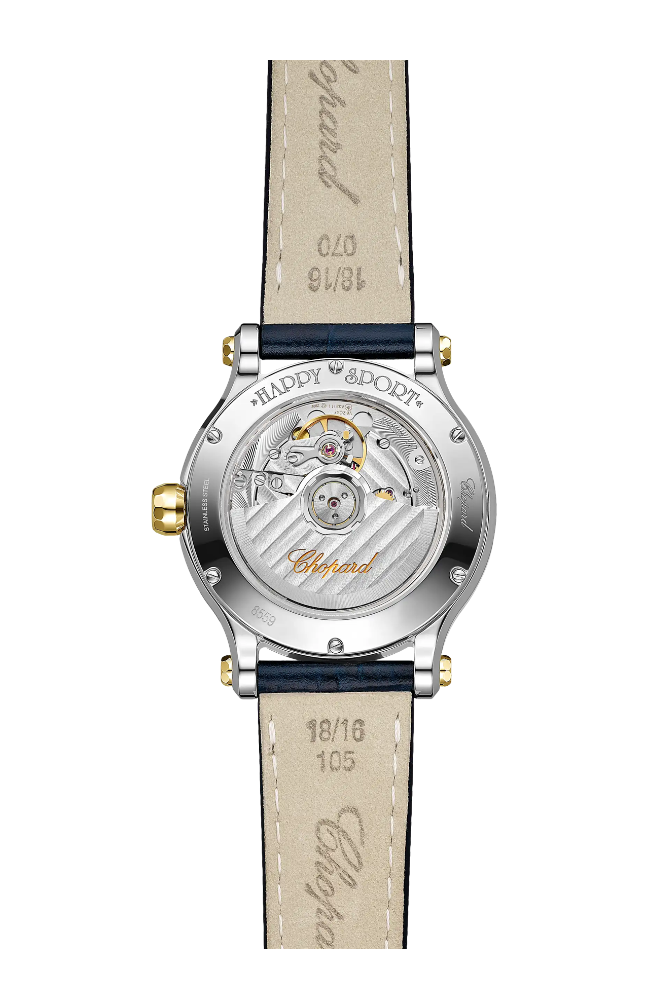 Happy sport 36 mm, automatico, oro rosa etico, lucent steel™, diamanti - 278559