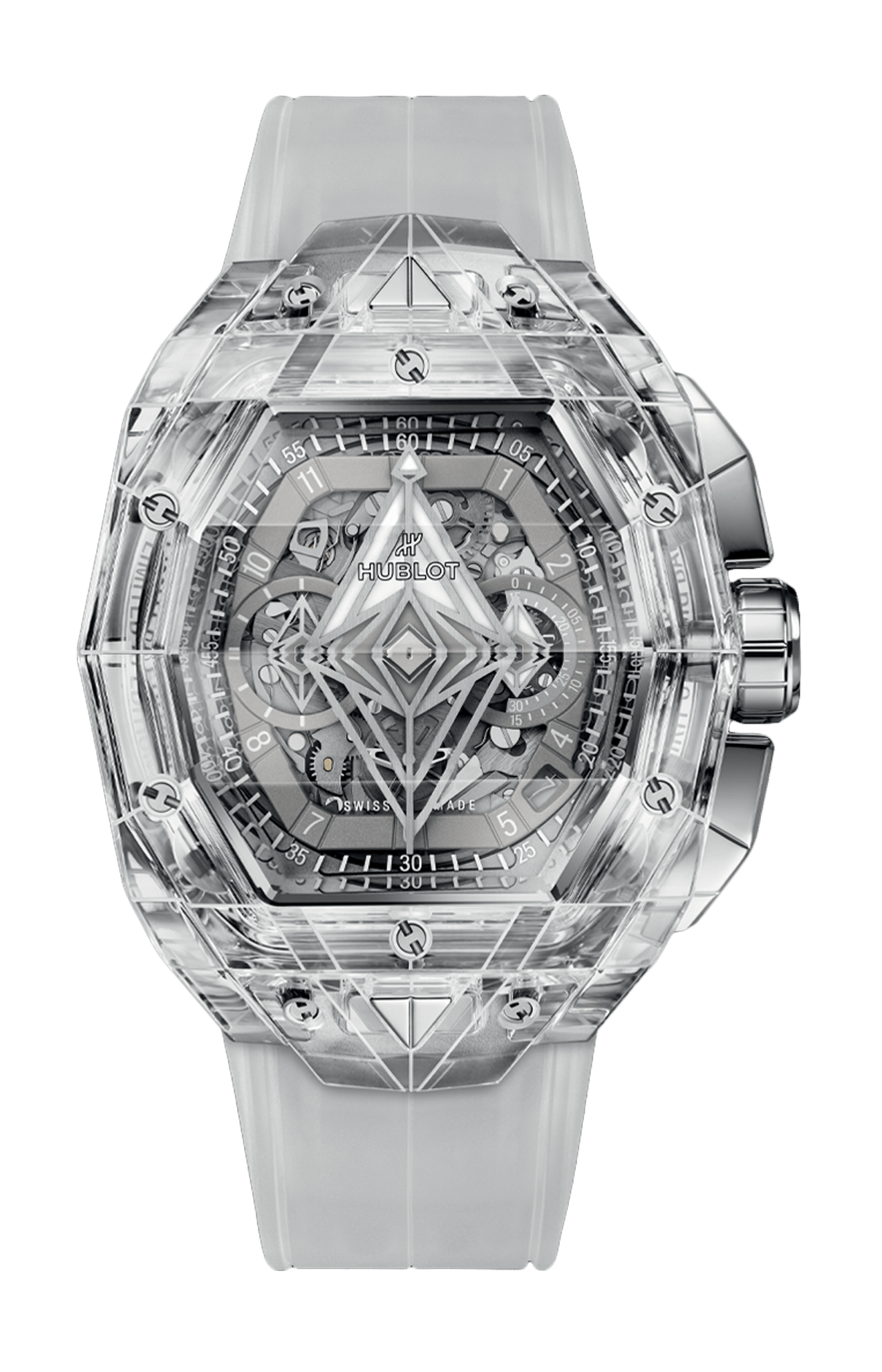 Alla ricerca della fusione perfetta tra movimento e cassa, gli ingegneri e i chimici Hublot hanno studiato e sviluppato un materiale trasparente che rivela il cuore dell'orologio, pur essendo sufficientemente robusto da proteggere efficacemente il meccanismo. È così che la manifattura è diventata esperta dello zaffiro sintetico, un materiale da cui trae qualità estetiche uniche nel mondo dell'orologeria, trasformando ogni orologio in un'opera d'arte.