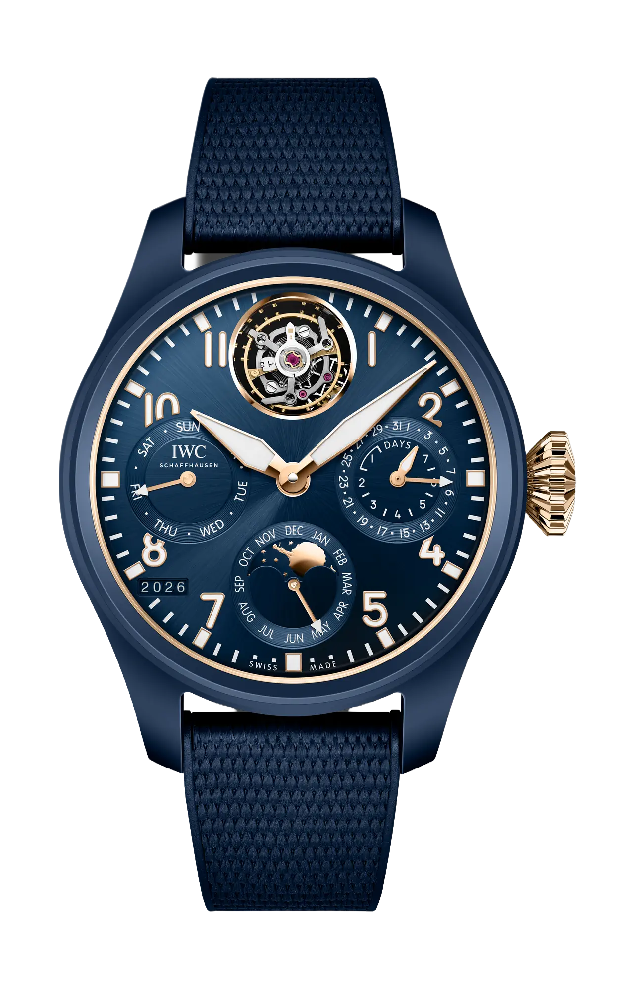 Caratterizzato da una cassa in ceramica blu e da un quadrante blu, il Big Pilot’s Watch Perpetual Calendar Tourbillon Le Petit Prince combina due complicazioni di alta orologeria ed è limitato a 100 esemplari.