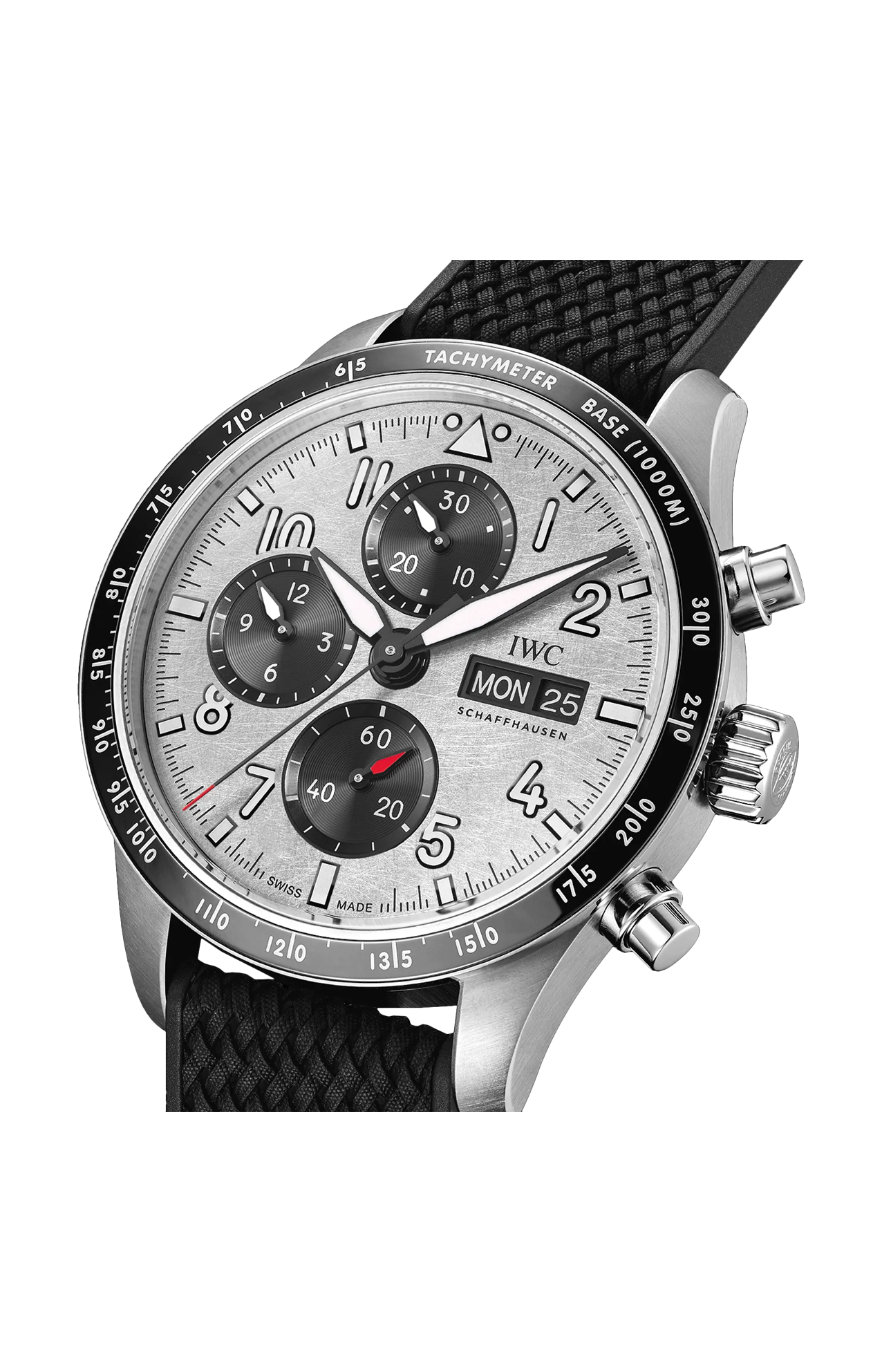 Limitato a 120 pezzi, il Pilot’s Watch Performance Chronograph 41 722 Edition presenta un quadrante realizzato con parti originali in magnesio recuperate dalla carrozzeria della leggendaria Mercedes-Benz 300 SLR 722.