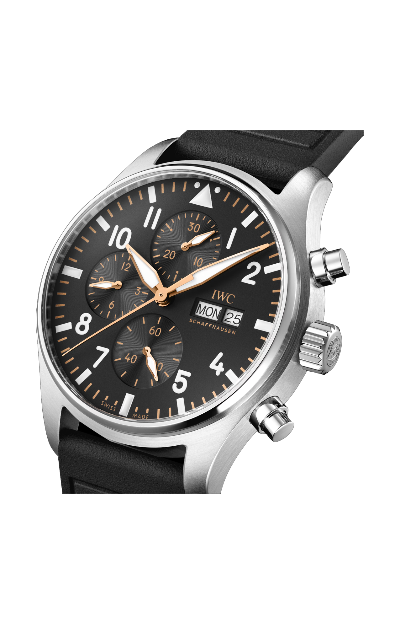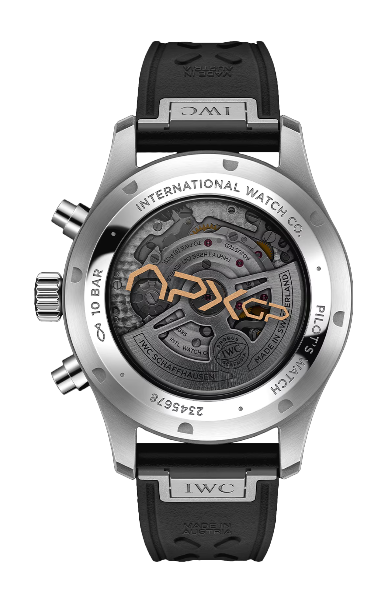 Dedicato al team immaginario “APXGP” del film “F1®” di Apple TV+, il Pilot’s Watch Chronograph 41 APXGP presenta un design nei colori della squadra con elementi neri, dorati e bianchi. Una cassa in acciaio del diametro di 41 millimetri è abbinata a un quadrante nero, stampato con numeri bianchi e indici dorati. Le lancette dei minuti e delle ore e le lancette dei contatori sono placcate oro e riempite con Super-LumiNova® bianca. Il fondello in vetro zaffiro colorato presenta il logo “APXGP” stampato in oro, mentre una speciale incisione al laser sul cinturino in caucciù nero, resistente e impermeabile, commemora la squadra immaginaria del film. Grazie al sistema di cambio EASX-CHANGE®, il cinturino può essere sostituito con la semplice pressione di un pulsante e senza l’ausilio di attrezzi. Il Pilot’s Watch Chronograph 41 APXGP è animato dal calibro di manifattura IWC 69385. Il movimento cronografico meccanico dal design classico con ruota a colonne è stato progettato con un’attenzione assoluta alle prestazioni, all’affidabilità e alla precisione. Consente di misurare accuratamente i tempi di arresto fino a 12 ore ed è dotato di quadranti secondari dal caratteristico layout verticale di IWC. Le ore sono visualizzate a ore 9, mentre i minuti di arresto sono indicati direttamente a ore 12, il che ne rende la lettura particolarmente facile e intuitiva. L’affidabile sistema di carica a cricchetto bidirezionale del movimento accumula una riserva di carica di 46 ore nella molla principale.