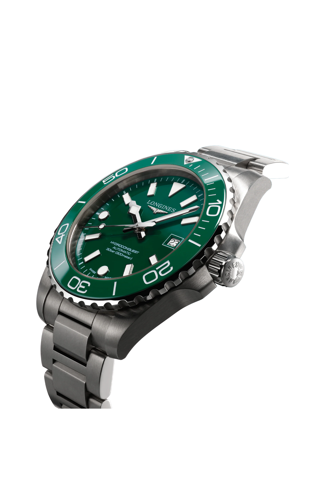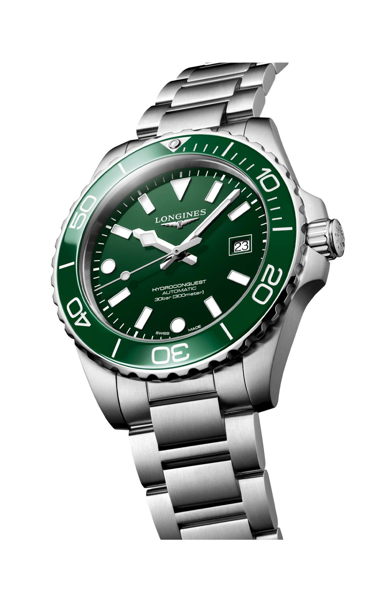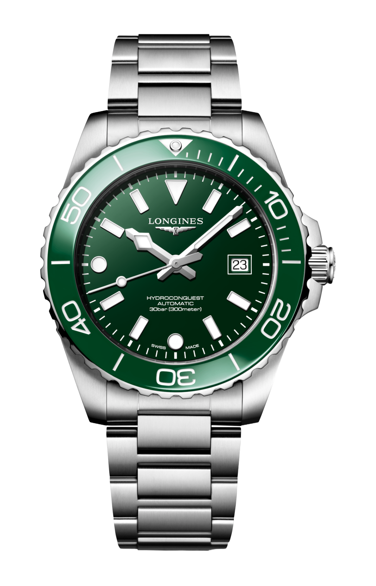 OROLOGIO AUTOMATICO, Ø 42.00 MM, ACCIAIO INOSSIDABILE E LUNETTA IN CERAMICA, L3.788.4.06.6 DATE, MOVIMENTO MECCANICO A CARICA AUTOMATICA CON FREQUENZA DI 25'200 ALTERNANZE ORARIE E RISERVA DI CARICA DI CIRCA 72 ORE, BILANCIERE-SPIRALE IN SILICIO MONOCRISTALLINO. CORONA A VITE LUNETTA GIREVOLE UNIDIREZIONALE, IMPERMEABILE FINO A 30 BAR, VETRO ZAFFIRO ANTIGRAFFIO CON TRATTAMENTO ANTIRIFLESSO MULTISTRATO SU ENTRAMBI I LATI. QUADRANTE VERDE LACCATO LUCIDO, SWISS SUPER-LUMINOVA®. BRACCIALE IN ACCIAIO INOSSIDABILE, CON DOPPIA CHIUSURA DEPLOYANTE DI SICUREZZA CON SISTEMA DI MICROREGOLAZIONE.