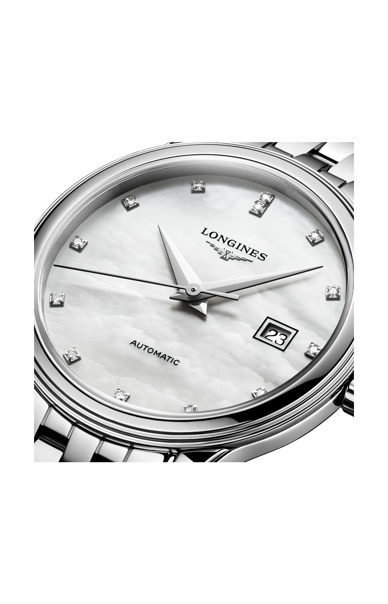 OROLOGIO AUTOMATICO, Ø 30.00 MM, ACCIAIO INOSSIDABILE, L4.374.4.88.6 DATE, MOVIMENTO MECCANICO A CARICA AUTOMATICA CON FREQUENZA DI 28'800 ALTERNANZE ORARIE E RISERVA DI CARICA DI CIRCA 45 ORE, BILANCIERE-SPIRALE IN SILICIO MONOCRISTALLINO. IMPERMEABILE FINO A 3 BAR, VETRO ZAFFIRO ANTIGRAFFIO BOMBATO CON TRATTAMENTO ANTIRIFLESSO MULTISTRATO SUL LATO INTERNO. QUADRANTE MADREPERLA BIANCA. BRACCIALE IN ACCIAIO INOSSIDABILE, CON CHIUSURA DÉPLOYANTE A TRIPLA SICUREZZA E MECCANISMO DI APERTURA A PRESSIONE.
