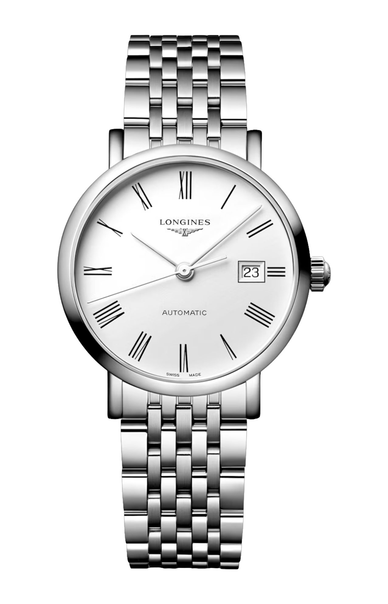 OROLOGIO AUTOMATICO, Ø 29.00 MM, ACCIAIO INOSSIDABILE, L4.310.4.18.6 DATE, MOVIMENTO MECCANICO A CARICA AUTOMATICA CON FREQUENZA DI 28'800 ALTERNANZE ORARIE E RISERVA DI CARICA DI CIRCA 45 ORE, BILANCIERE-SPIRALE IN SILICIO MONOCRISTALLINO. IMPERMEABILE FINO A 3 BAR, VETRO ZAFFIRO ANTIGRAFFIO. QUADRANTE BIANCO MAT. BRACCIALE IN ACCIAIO INOSSIDABILE, CON CHIUSURA DÉPLOYANTE A TRIPLA SICUREZZA E MECCANISMO DI APERTURA A PRESSIONE.