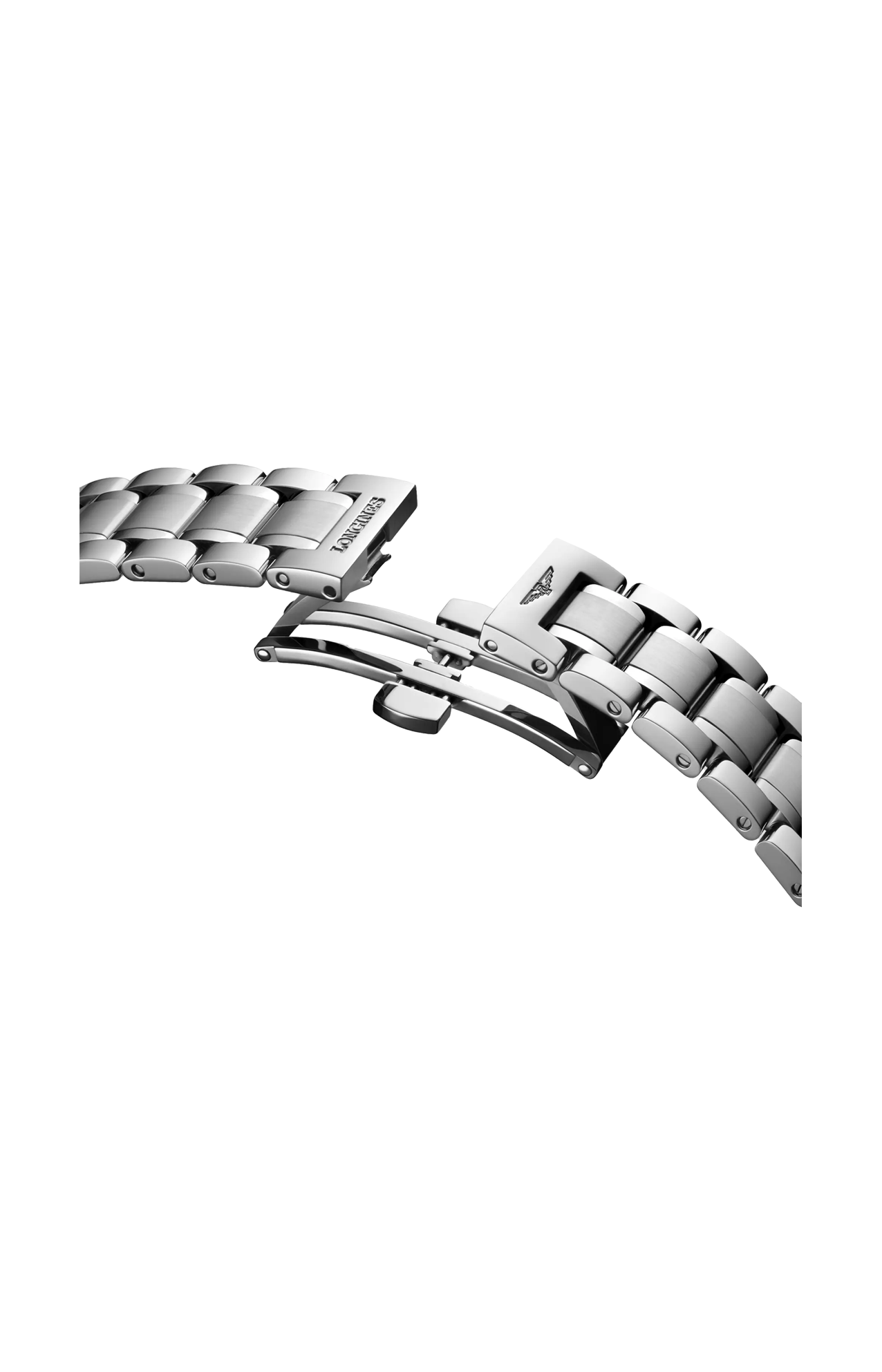 Movimento meccanico a carica automatica con frequenza di 25'200 alternanze orarie e riserva di carica di circa 72 ore, bilanciere-spirale in silicio monocristallino. Cassa con 68 diamanti top Wesselton IF-VVS incastonati, per un totale di 0.571 carati, impermeabile fino a 3 bar, vetro zaffiro antigraffio con trattamento antiriflesso multistrato su entrambi i lati. Quadrante argento. Bracciale in acciaio inossidabile, con chiusura déployante a tripla sicurezza e meccanismo di apertura a pressione.