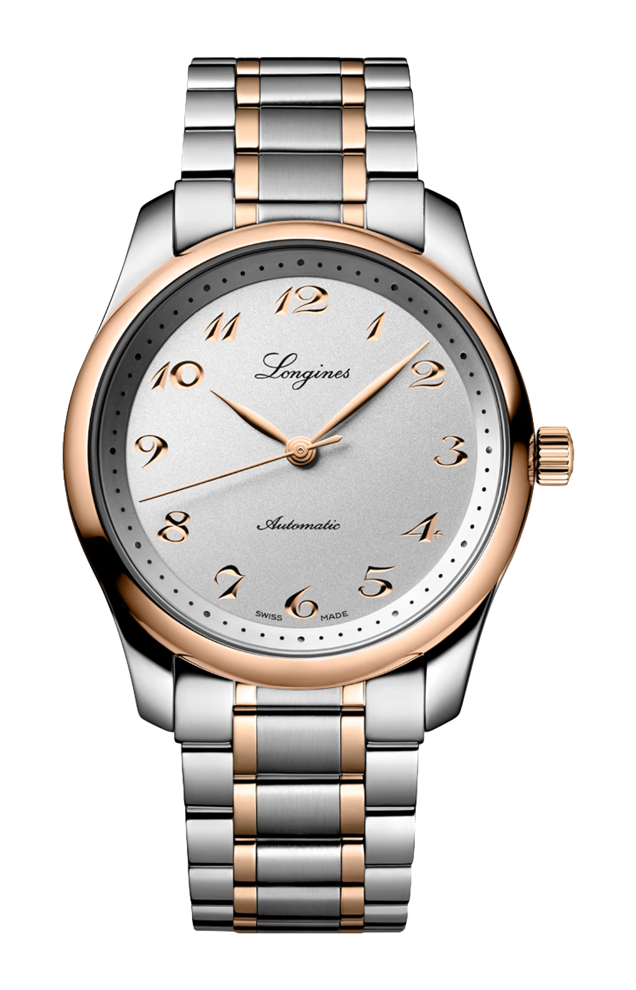 Movimento meccanico a carica automatica con frequenza di 25'200 alternanze orarie e riserva di carica di circa 72 ore, bilanciere-spirale in silicio monocristallino. Impermeabile fino a 3 bar, vetro zaffiro antigraffio con trattamento antiriflesso multistrato su entrambi i lati. Quadrante argento. Bracciale in acciaio inossidabile e lunetta girevole bidirezionale con inserto spazzolato circolare sovrastato da una coiffe in oro rosa 18 carati 5N, con chiusura DÉPLOYANTE a tripla sicurezza e meccanismo di apertura a pressione.