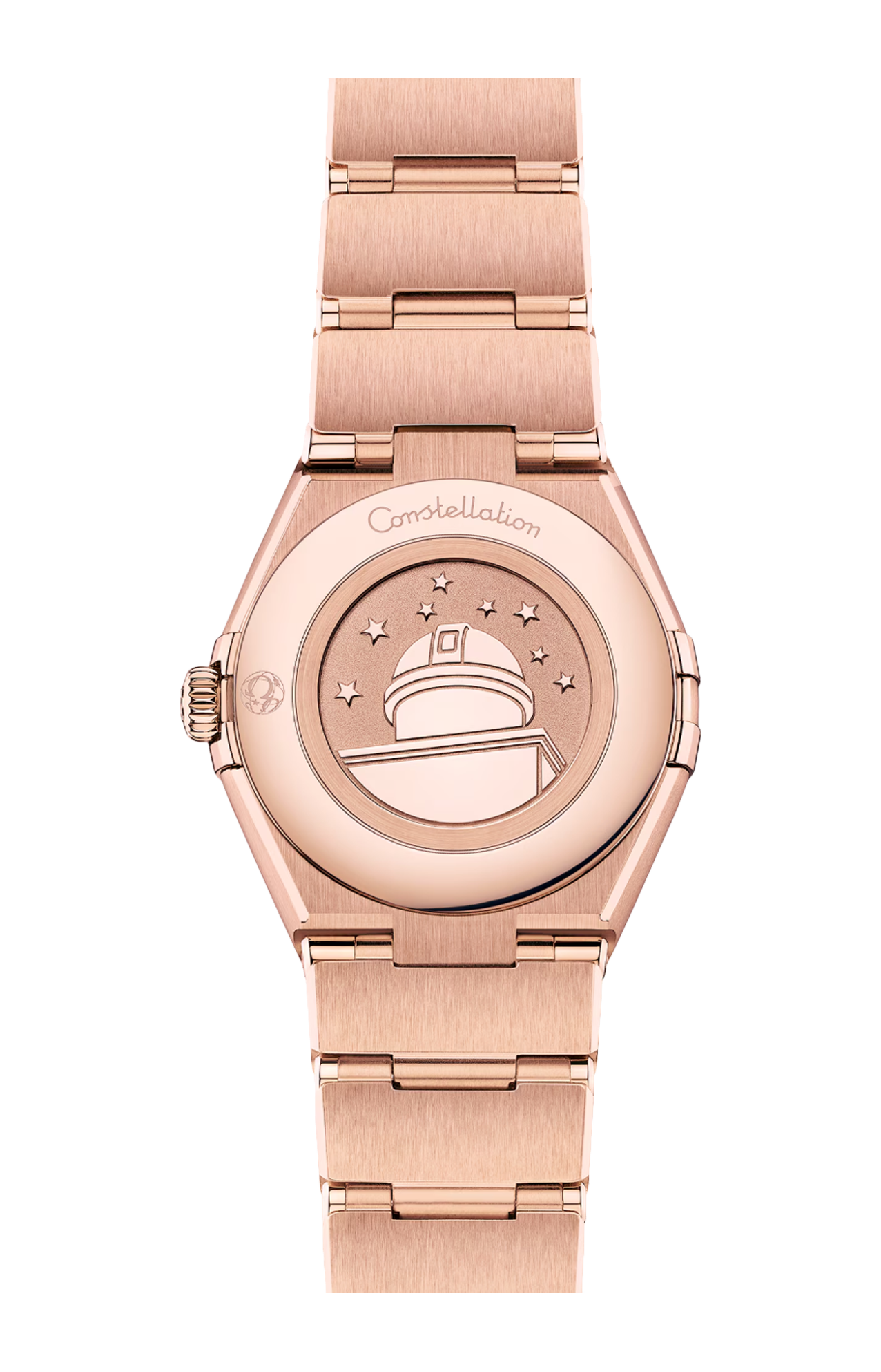 L’orologio presenta una cassa da 28 mm corredata da un bracciale “Mono Rang” in oro Sedna™ 18K e integra molte delle caratteristiche distintive della linea Constellation, come le griffe lucide, le sfaccettature a mezzaluna e la lunetta tempestata di diamanti.