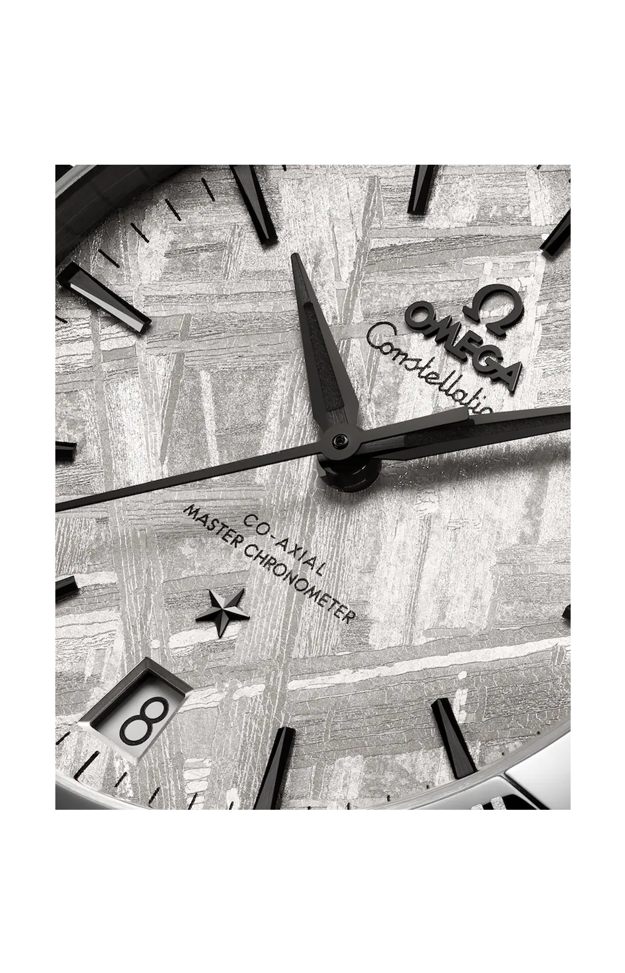 Il meraviglioso quadrante è realizzato a partire da un vero frammento di meteorite di ferro, sottoposto a trattamento galvanico grigio-rodiato. Il motivo naturale interno al meteorite è unico per ogni modello, elemento che ne garantisce l'unicità. Completano il design dell’orologio un datario a finestrella a ore 6 e gli indici, le lancette e la stella Constellation trattati in PVD nero.