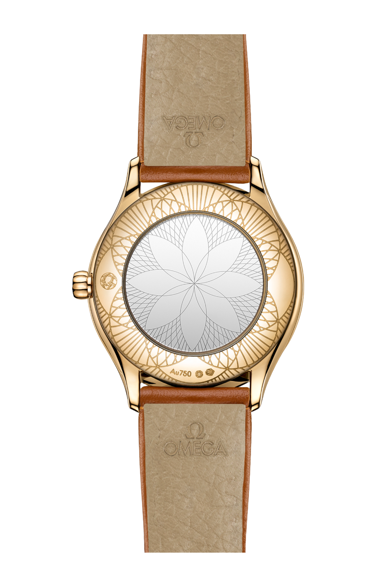 Corredato da un cinturino in pelle Novonappa oro con fibbia Trésor, l’orologio è animato dal calibro Omega 4061, alloggiato nello speciale fondello a specchio con motivo metallizzato “Her Time”.