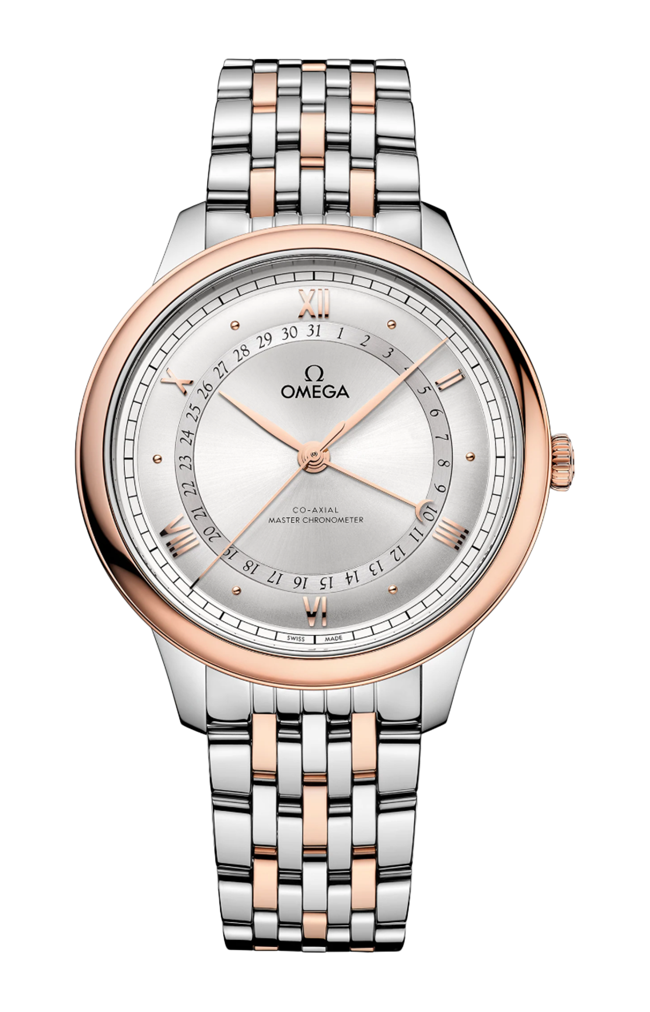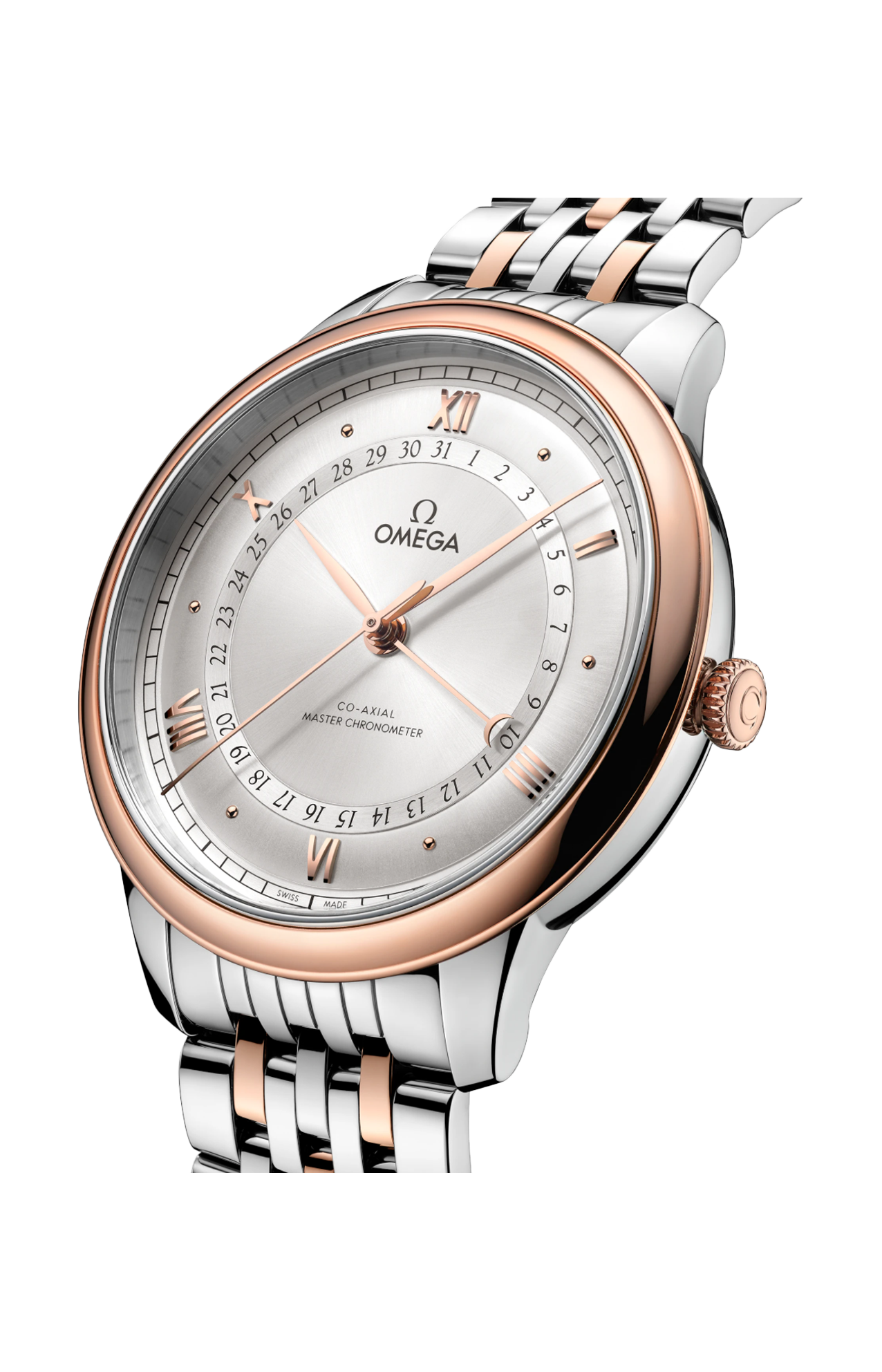 Corredato da un bracciale in acciaio inossidabile e oro Sedna™ 18K, questo de Ville Prestige è animato dal calibro Co-Axial Master Chronometer 8936, visibile attraverso il fondello in vetro zaffiro.
