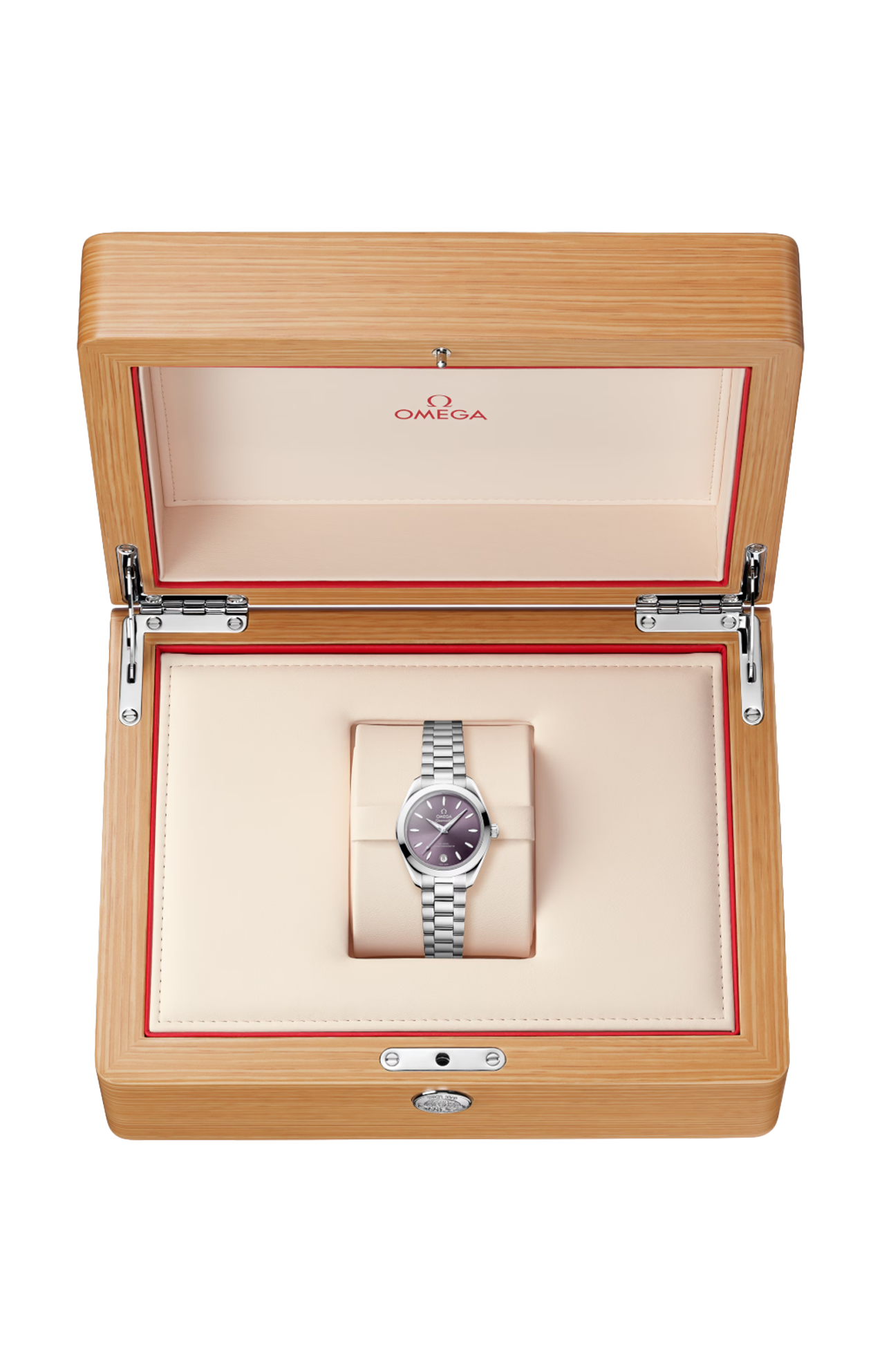 L’orologio è corredato da un bracciale integrato in acciaio inossidabile dotato di splendide maglie rotonde lucide e spazzolate, fibbia déployante con chiusura a farfalla e comodo sistema di regolazione Omega.