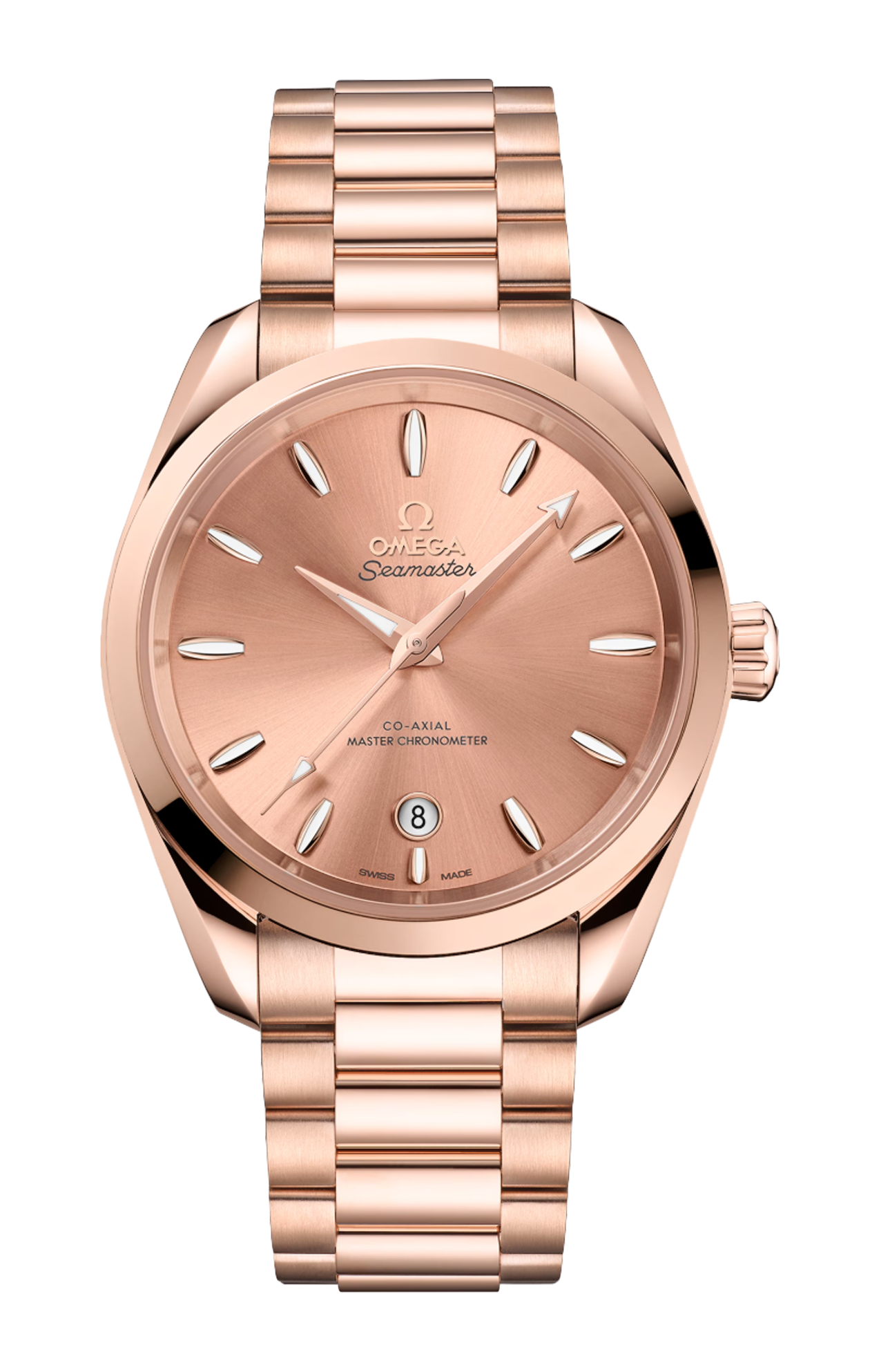 Corredato da un bracciale coordinato in oro Sedna™ 18K, l’orologio è animato dal calibro Omega Co-Axial Master Chronometer 8801, certificato dall’Istituto Federale Svizzero di Metrologia (METAS) secondo i più elevati standard stabiliti dal settore orologiero.