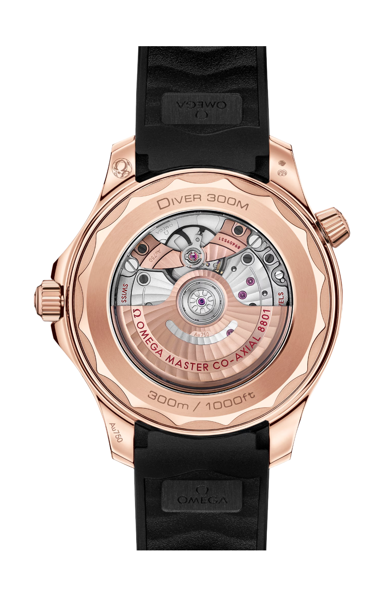 Le lancette scheletrate in oro Sedna™ 18K sono riempite di Super-LumiNova bianca, mentre la valvola per la fuoriuscita dell’elio è caratterizzata da una nuova forma conica. Corredato da un cinturino in caucciù nero, l’orologio è animato dal calibro OMEGA Master Chronometer 8801, visibile attraverso il fondello in vetro zaffiro con bordo ondulato.