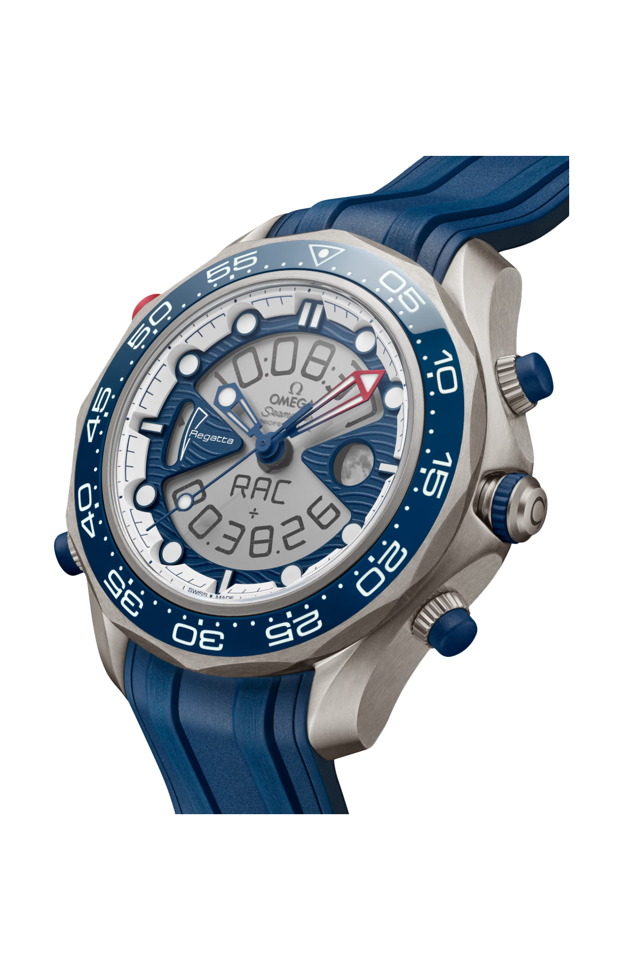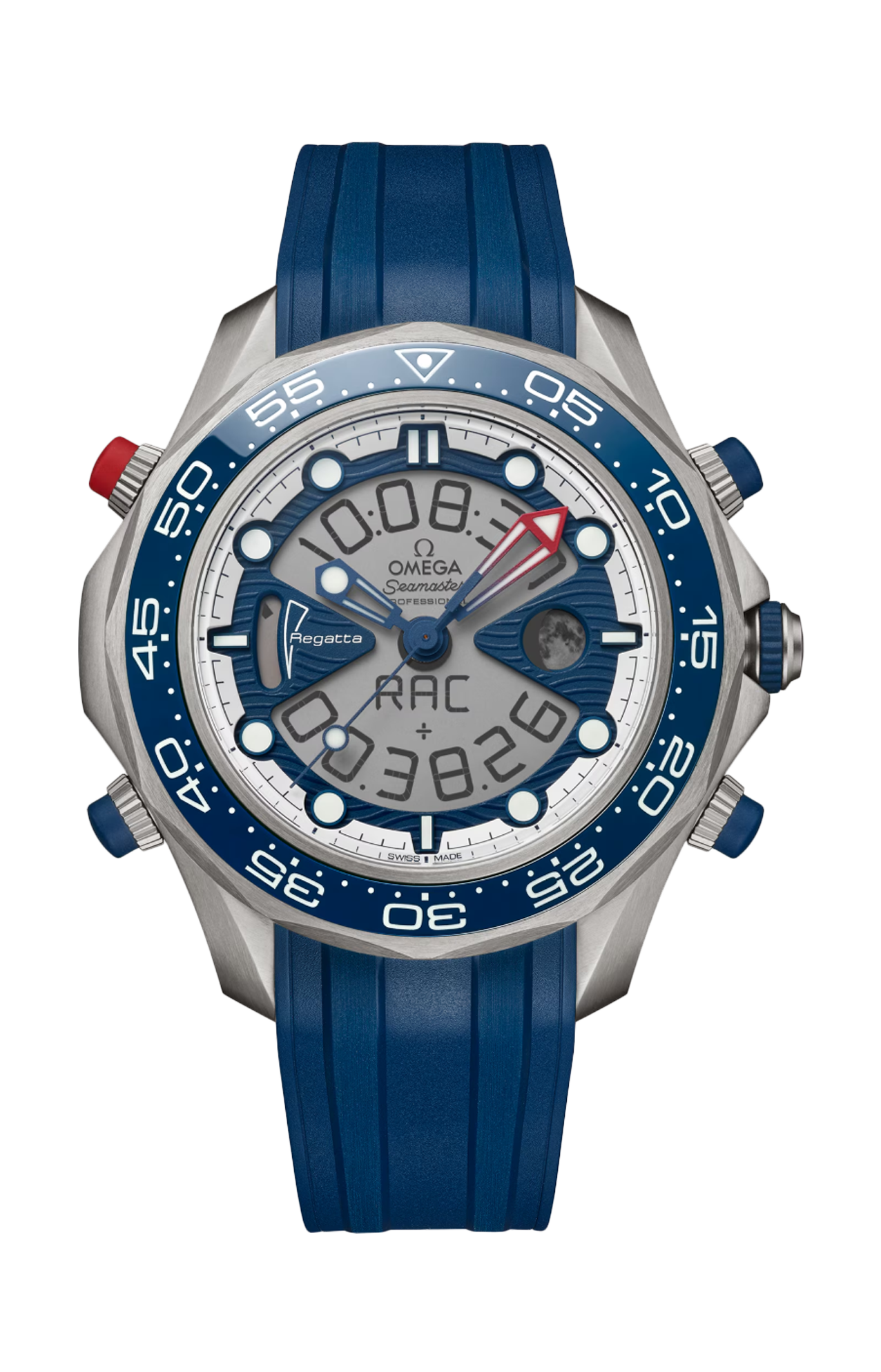 Presentato per rendere omaggio alla 37a edizione dell’America’s Cup, il Seamaster Regatta da 46,75 mm è un orologio per professionisti, che presenta un display analogico e digitale. Con una cassa in titanio grado 5, il Seamaster Regatta si adatta perfettamente alla vita in mare.