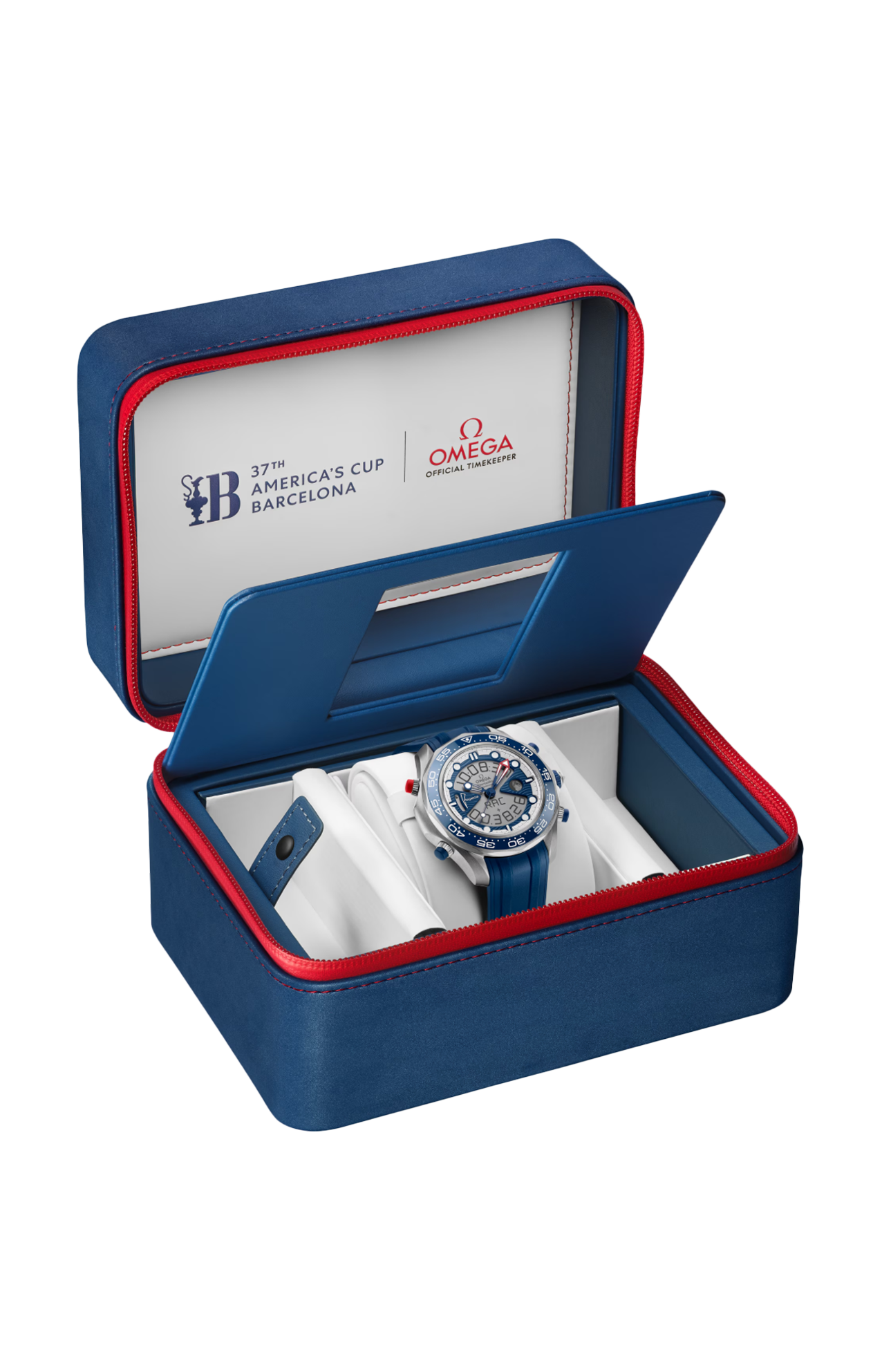 Insieme al quadrante, i pulsanti e l’anello della lunetta in ceramica blu lucida, l'ultimo strumento Omega per i professionisti è presentato su un cinturino integrato in caucciù blu con sistema di cambio rapido brevettato Omega. L’orologio è presentato in un cofanetto commemorativo blu con cuciture rosse.