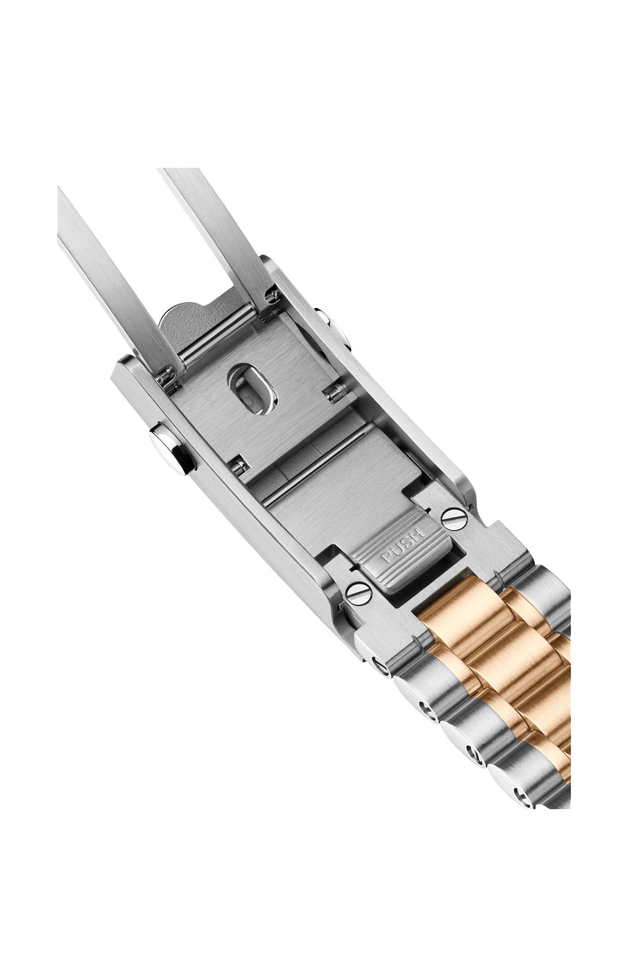 L’orologio è dotato di un bracciale lucido spazzolato con il comodo sistema di regolazione brevettato Omega, ed è animato dal calibro Omega Co-Axial Master Chronometer 3861.