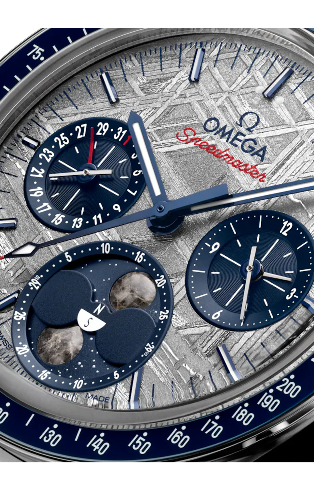Lo Speedmaster è uno dei segnatempo più iconici di Omega, avendo partecipato a tutte e sei le missioni lunari. Questo orologio Moonphase con cassa da 43 mm dotato di due lune realizzate in vero meteorite lunare è un meraviglioso tributo al patrimonio spaziale distintivo della collezione.