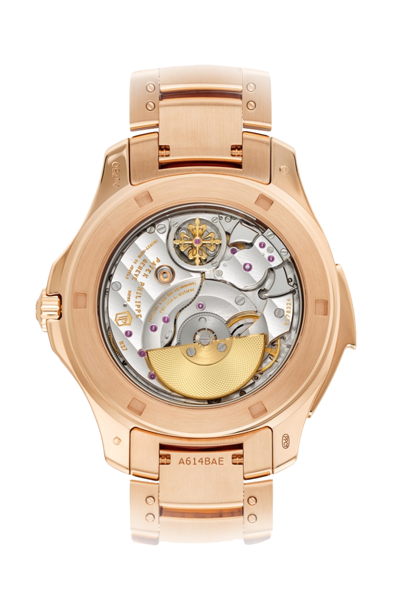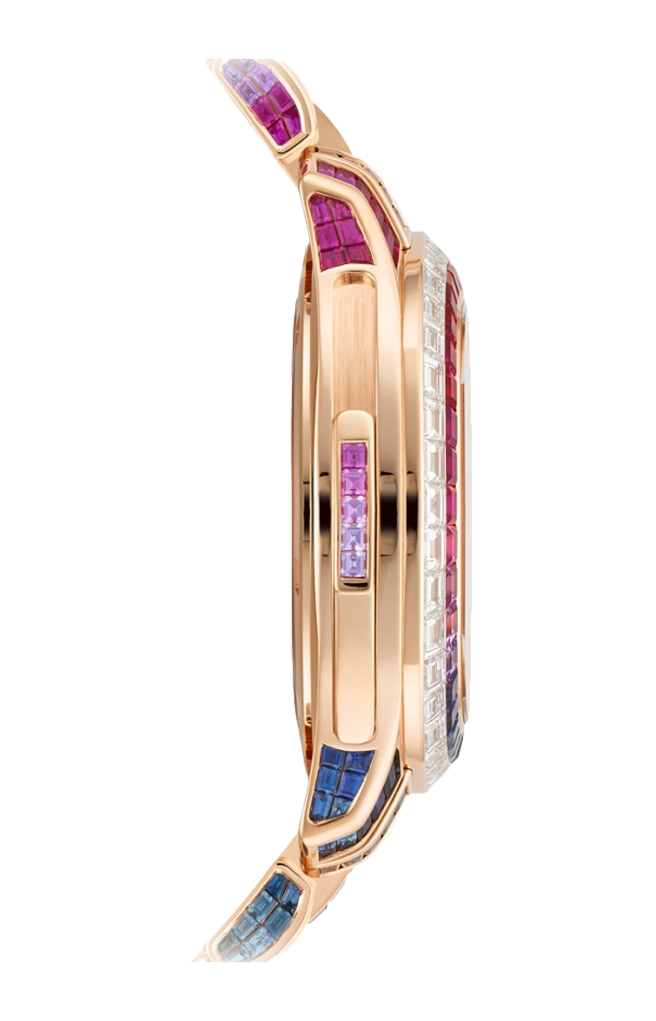 Patek Philippe introduce la prima grande complicazione nella collezione “Sporty Chic Contemporaneo” da donna Aquanaut Luce. Questa ripetizione minuti Haute Joallerie è tempestata di 130 diamanti a baguette (8,66 ct) sul quadrante e 779 zaffiri multicolori a baguette (45,05 ct) che formano un arcobaleno sulla lunetta, i fianchi della cassa e il bracciale, incassati con la sofisticata tecnica di “incastonatura invisibile”. Il quadrante ospita dodici indici in zaffiri multicolori, un giro delle ore in diamanti, una lancetta delle ore impreziosita da rubini e una dei minuti con zaffiri blu. Il fondo in cristallo di zaffiro permette di ammirare il calibro R 27 a carica automatica con i suoi due timbri classici.
