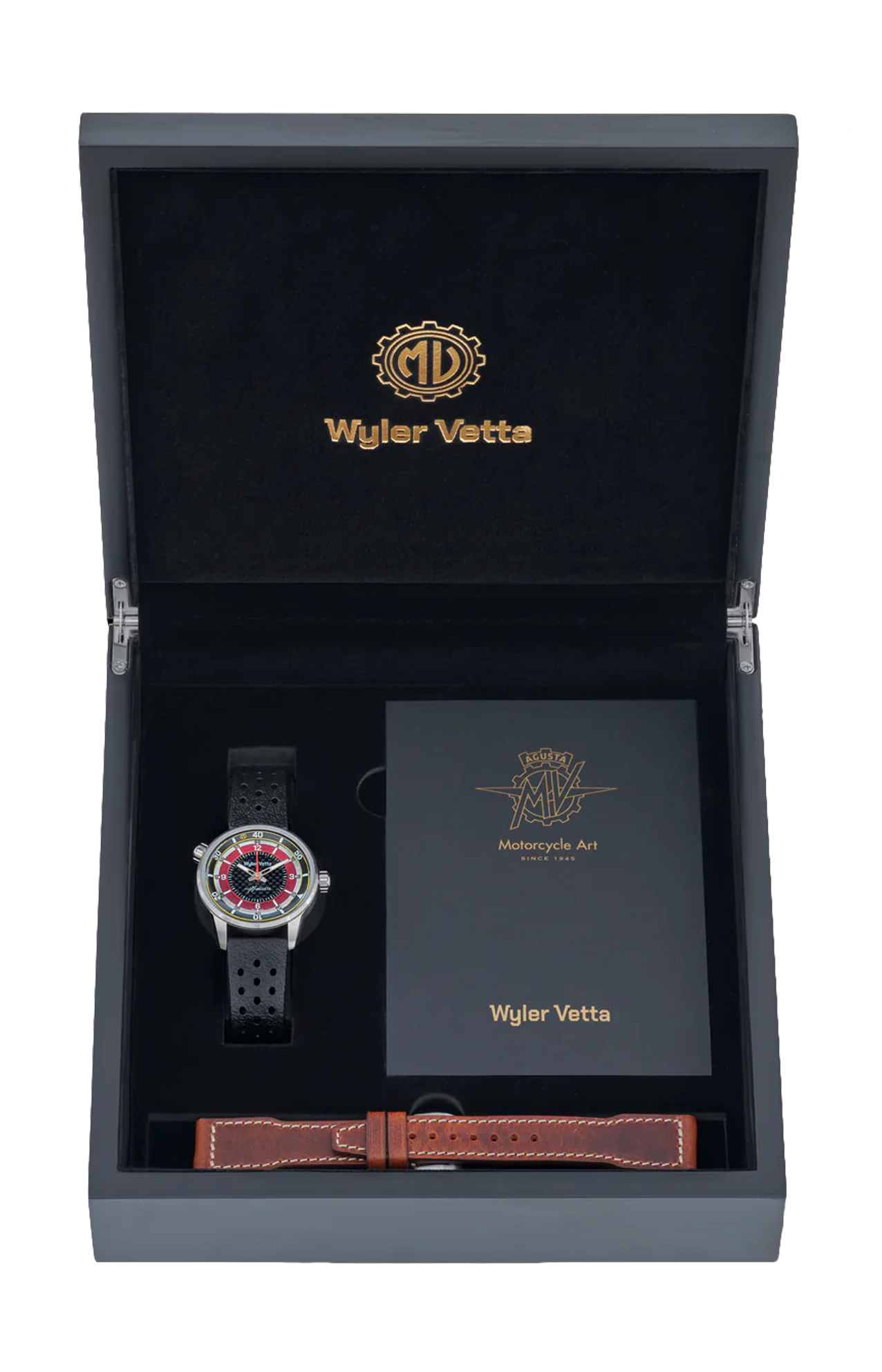 Il solo tempo Wyler Vetta in collaborazione con MV Agusta, così come il cronografo, riflette perfettamente lo stile della Superveloce 98 Edizione Limitata, la moto celebrativa degli 80 anni dal primissimo motore costruito dalla casa Varesina.