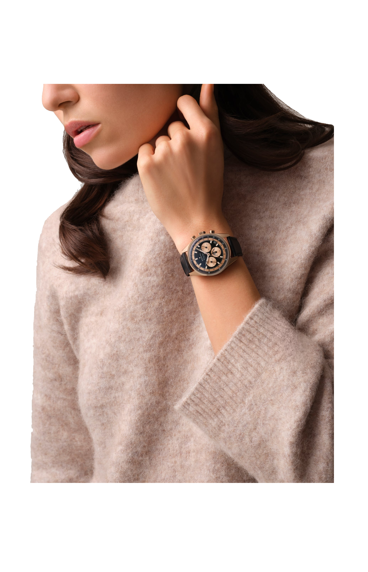 Dopo i primi modelli in acciaio, questo simbolo della raffinatezza orologiera viene ora presentato in una versione decisamente moderna in oro rosa 18 carati con un raffinato quadrante nero. L'elegante contrasto tra l'oro rosa e il nero intenso si estende anche alle lancette e al quadrante, i cui contatori cronografici, la precisione al 1/10 di secondo della minuteria e gli indici riprendono magnificamente il colore della cassa. L'uso di Superluminova SLN C1 sugli indici sfaccettati e sulle lancette migliora la leggibilità in condizioni di scarsa illuminazione.
