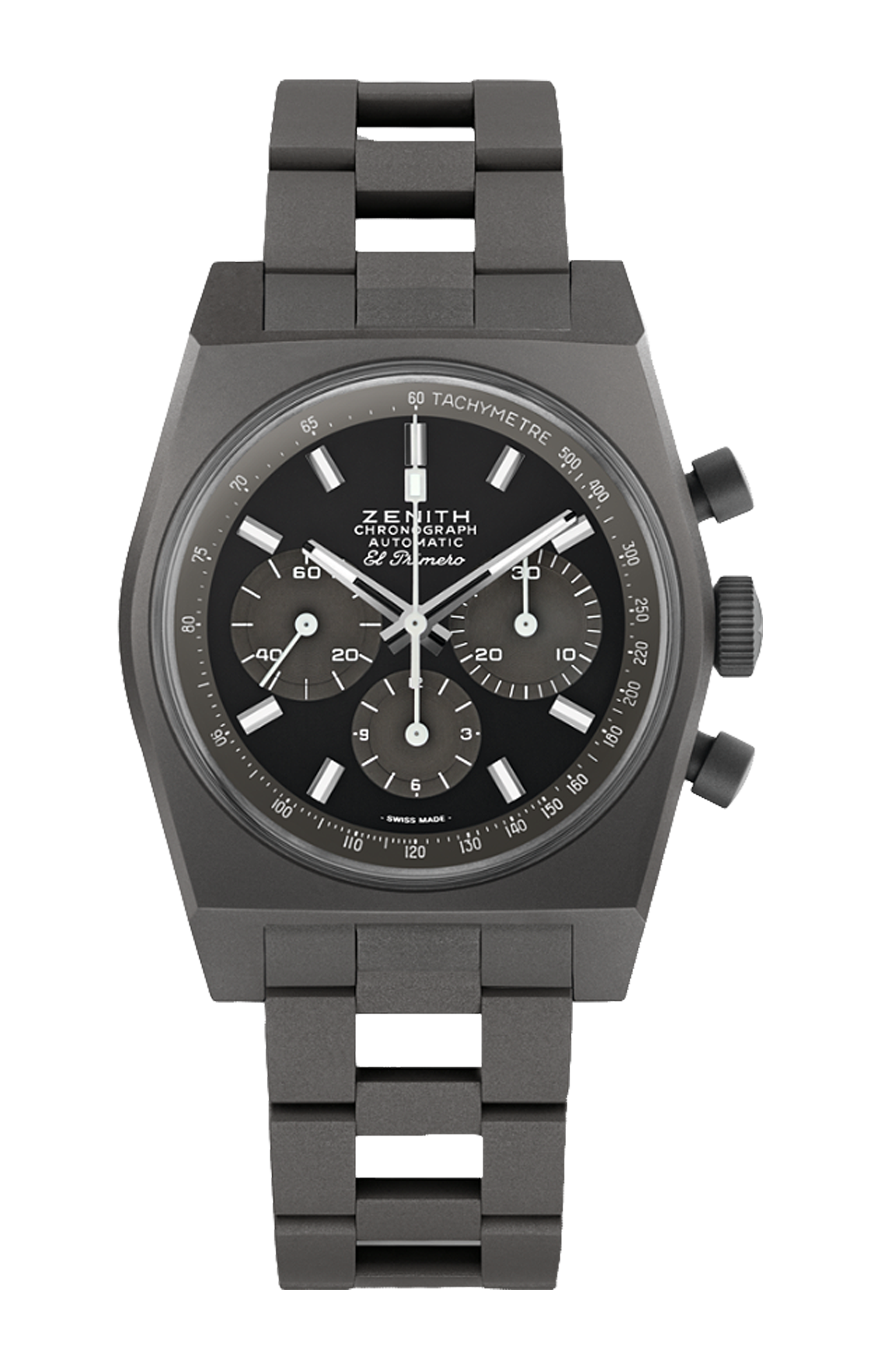 Il Chronomaster Revival Shadow si ispira a un misterioso prototipo di cronografo Zenith con cassa nera degli anni ’70 e ne riproduce il look raffinato attraverso una cassa in titanio con finitura interamente opaca, abbinata a un quadrante nero senza datario e indici dei secondi. Dotato di bracciale in titanio microsabbiato con fibbia déployante.