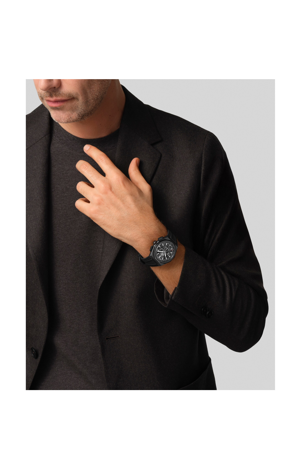 Ispirandosi al gioco di luci e ombre dei paesaggi urbani moderni, ZENITH lancia una straordinaria interpretazione del DEFY Skyline Chronograph in ceramica nera con quadrante grigio sfumato. Oltre a offrire resistenza e profondità, la ceramica, a colorazione integrale, conferisce struttura all’ombra, esaltando l’intensità architettonica della cassa. Caratterizzato dall’iconico motivo a stella a quattro punte inciso e da tre contatori cronografici, questo segnatempo è animato dal movimento cronografico ad alta frequenza El Primero 3600 e offre un’estrema precisione al 1/10 di secondo. Il bracciale in ceramica nera può essere sostituito con il cinturino in caucciù nero coordinato grazie al meccanismo di cambio sostituzione del cinturino, per una maggiore versatilità.